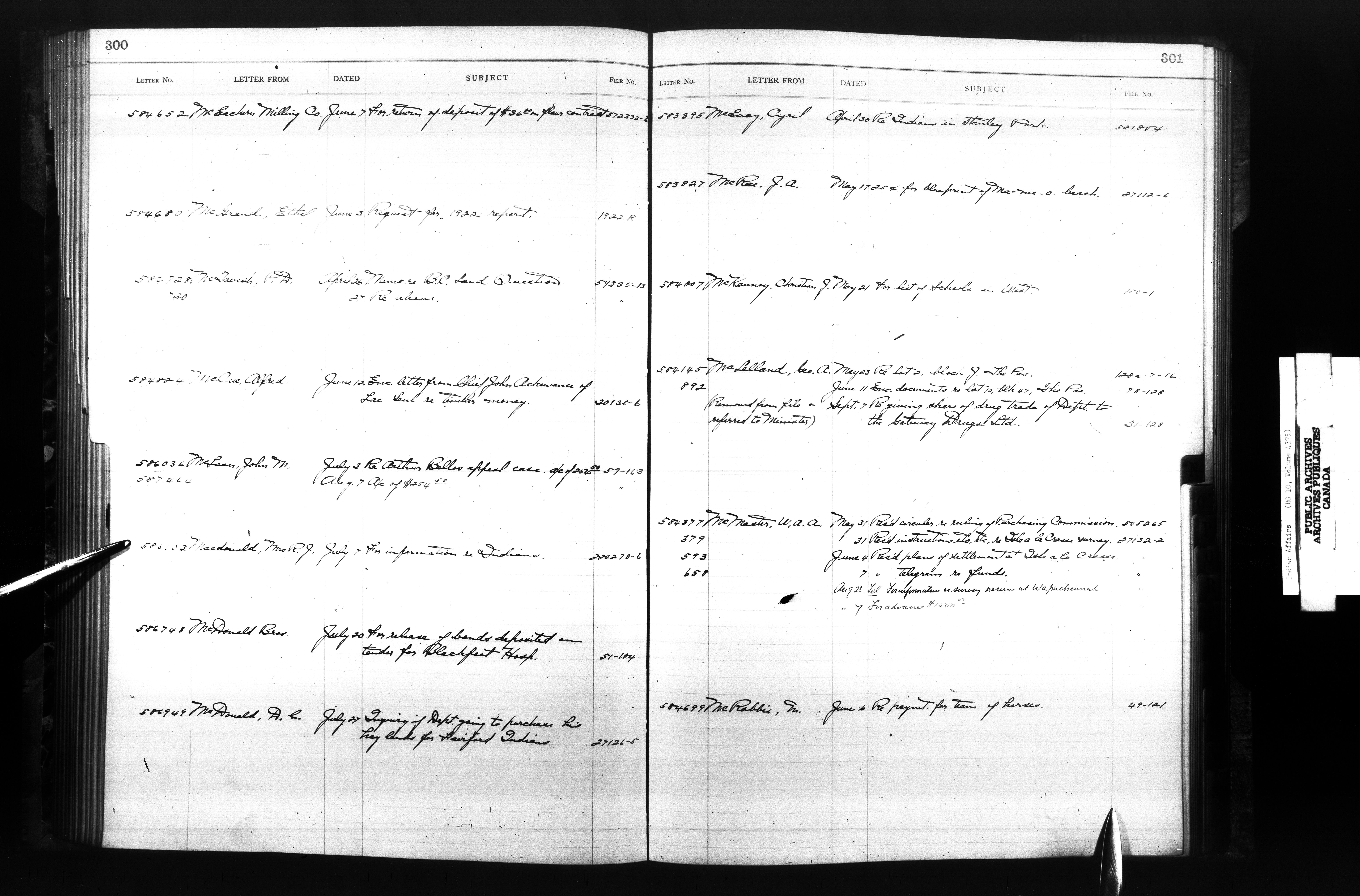 Department of Indian Affairs, Headquarters central registry system :registers, indices and indexed registers : C-10522