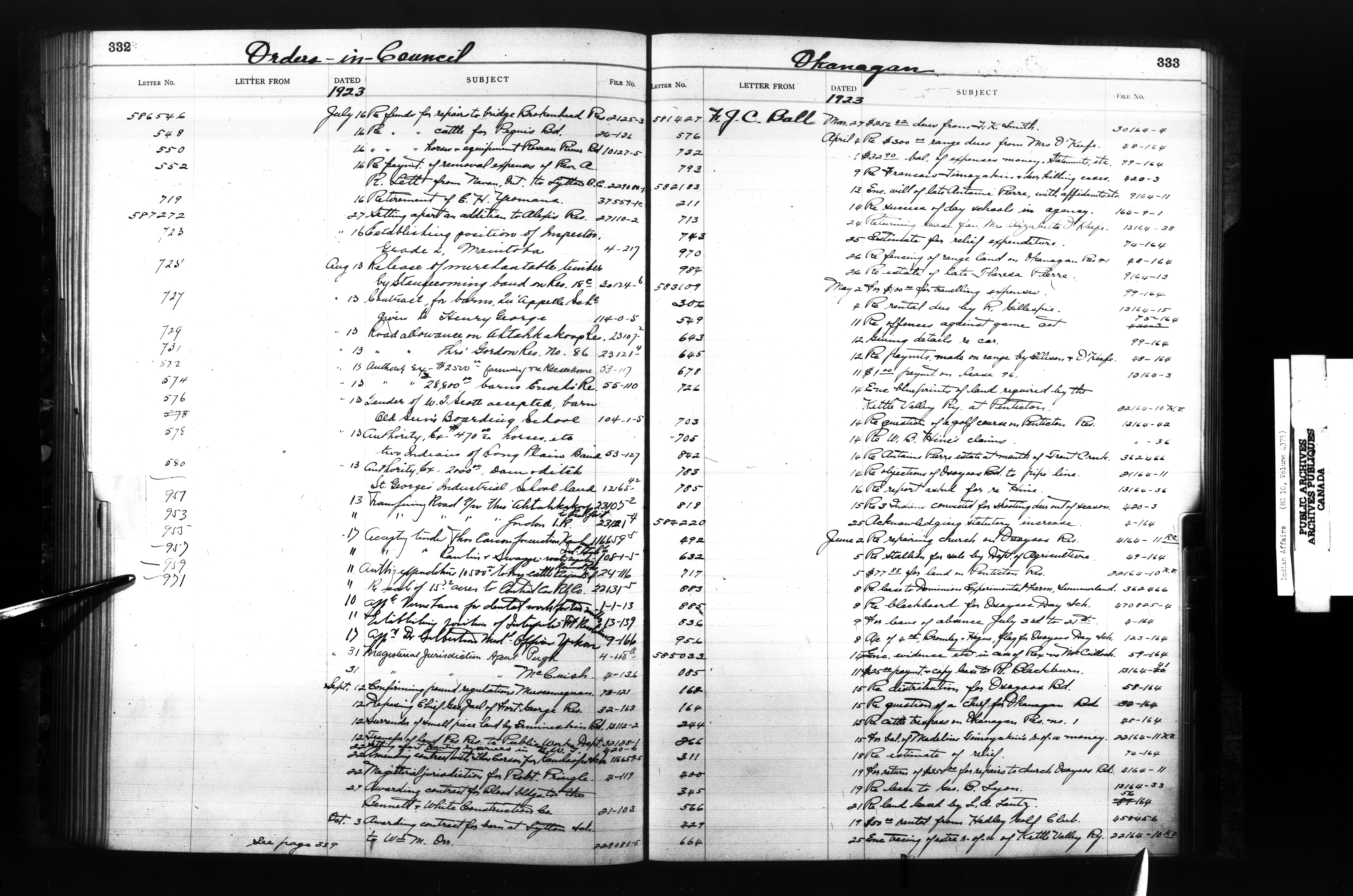Department of Indian Affairs, Headquarters central registry system :registers, indices and indexed registers : C-10522