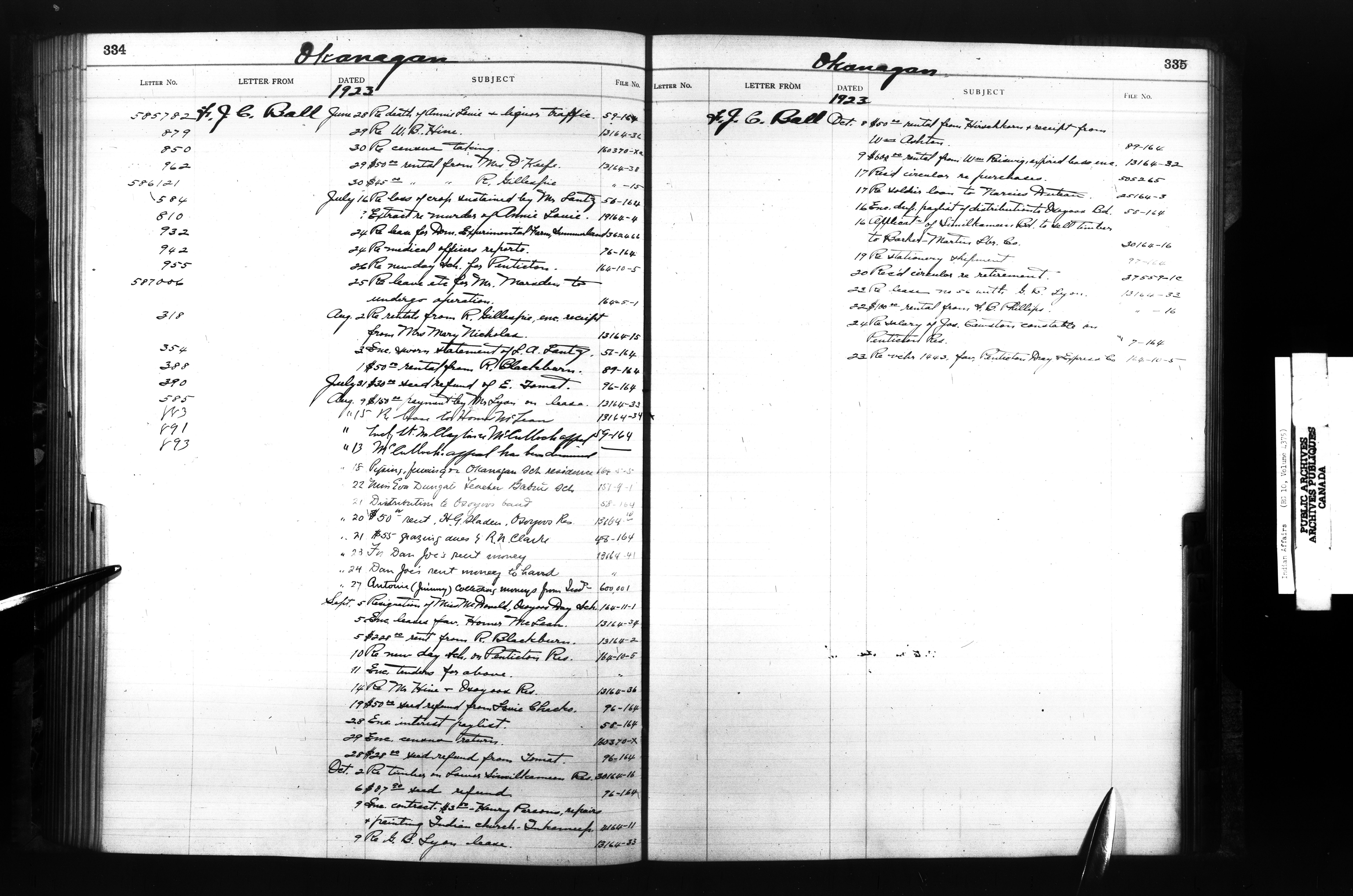 Department of Indian Affairs, Headquarters central registry system :registers, indices and indexed registers : C-10522