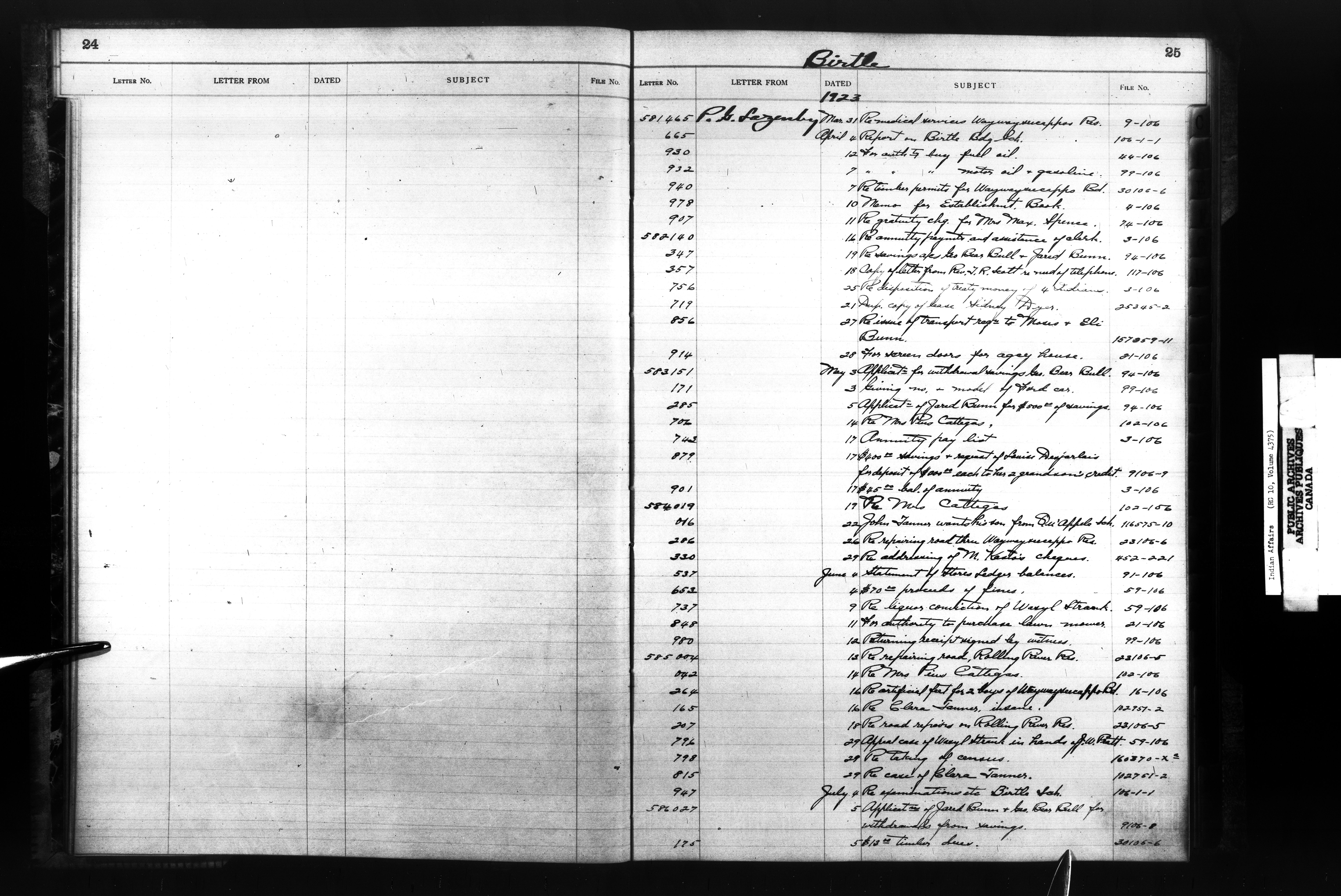 Department of Indian Affairs, Headquarters central registry system :registers, indices and indexed registers : C-10522