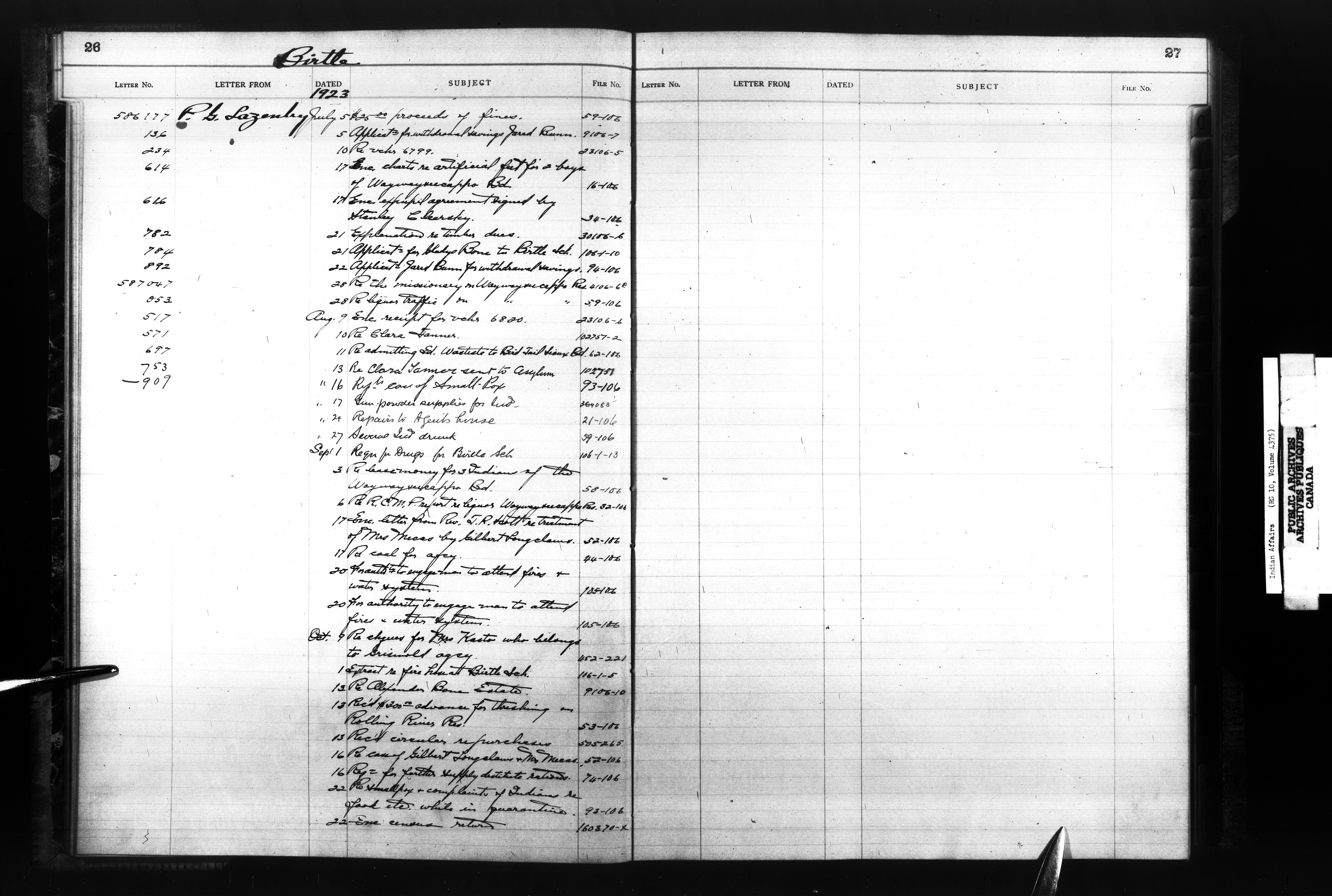 Department of Indian Affairs, Headquarters central registry system :registers, indices and indexed registers : C-10522