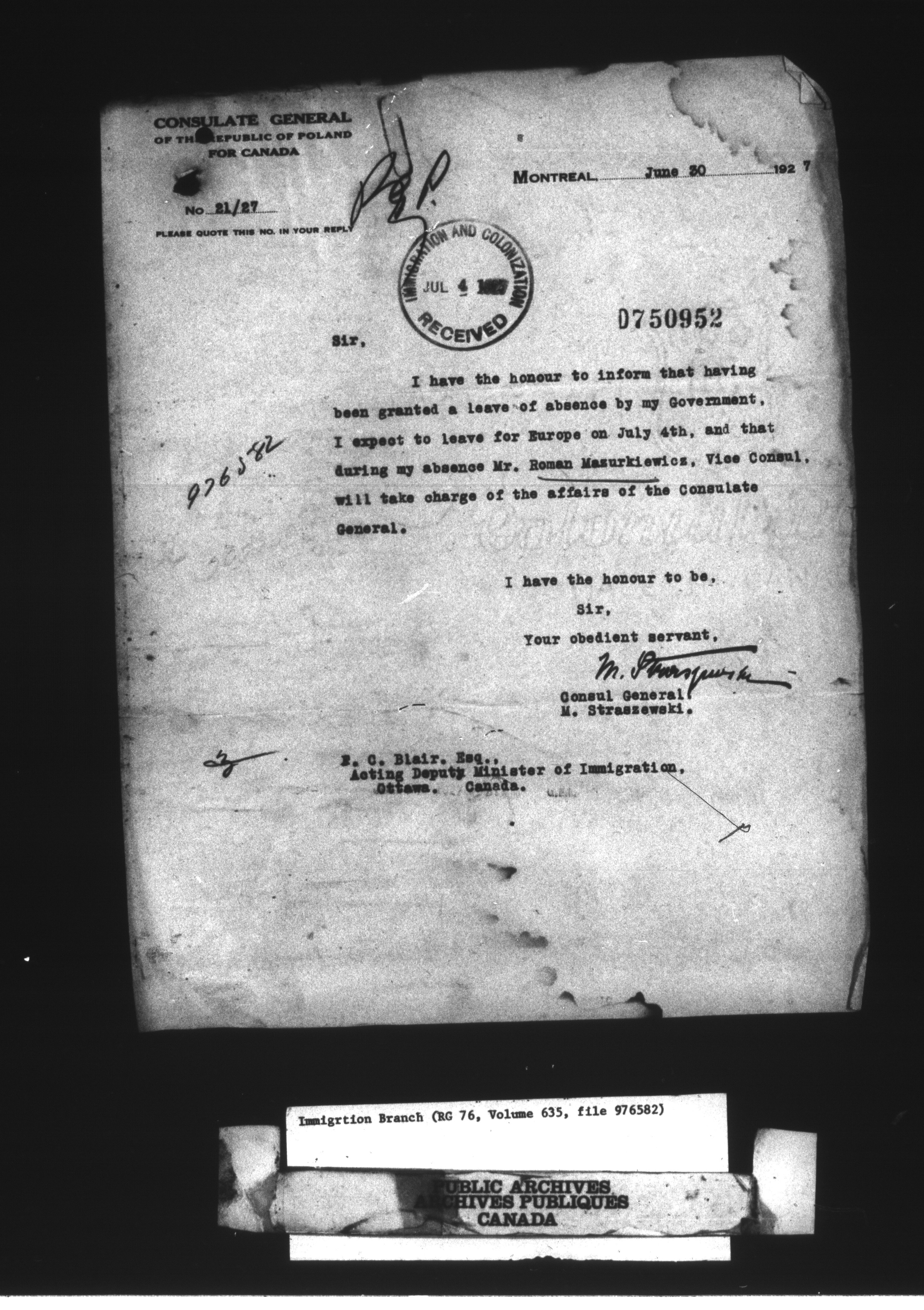 Subject, policy and case files in the First Central Registry series of the Immigration Program, 1892-1950 - 10577