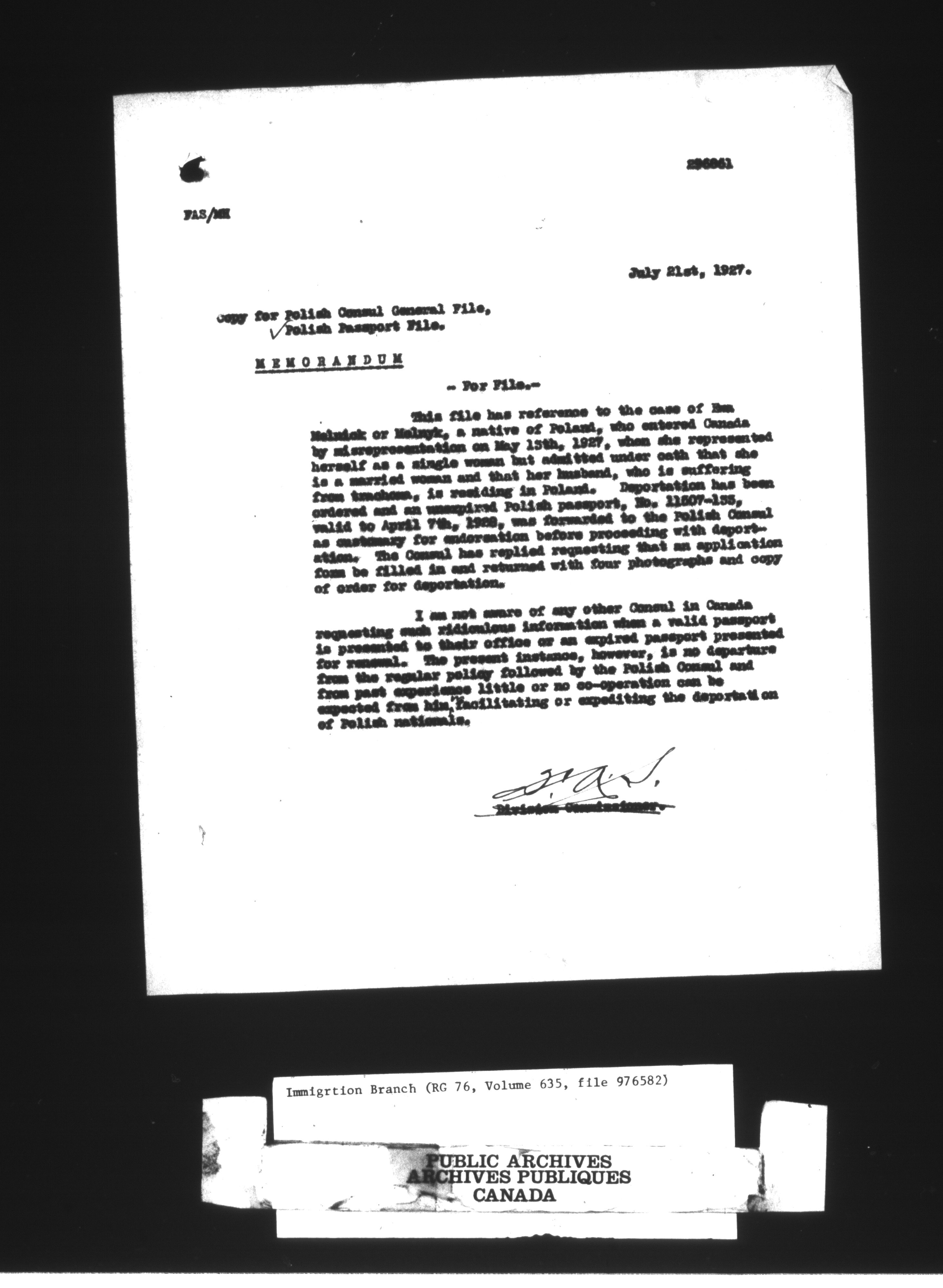 Subject, policy and case files in the First Central Registry series of the Immigration Program, 1892-1950 - 10577