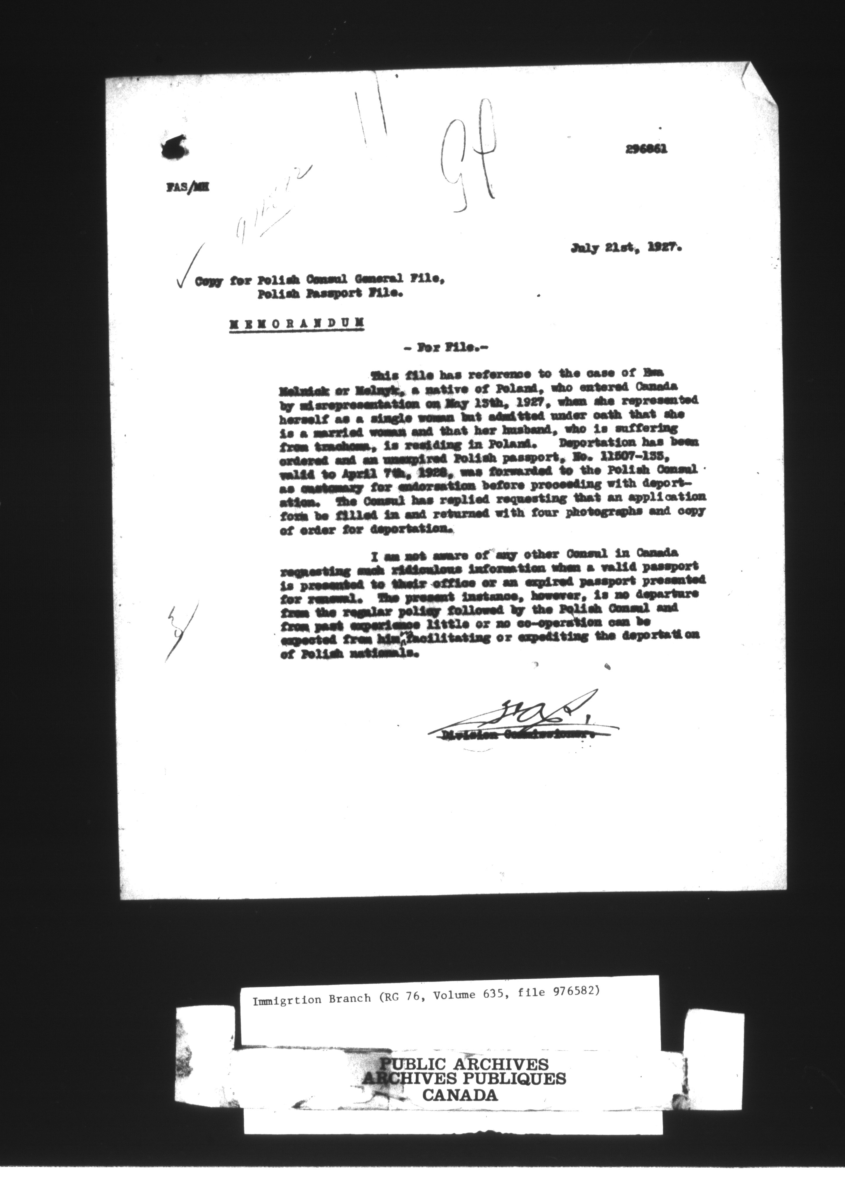Subject, policy and case files in the First Central Registry series of the Immigration Program, 1892-1950 - 10577