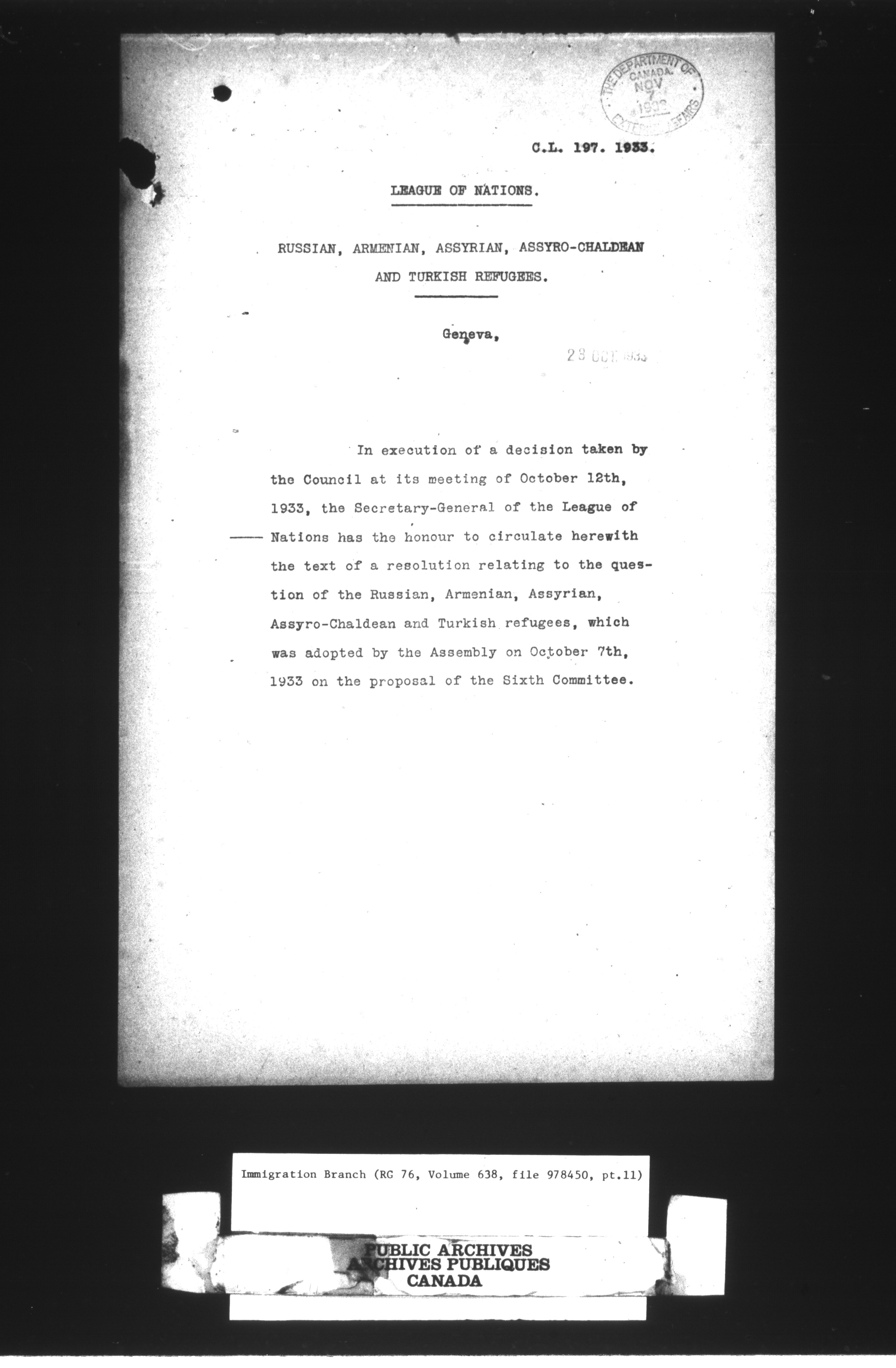 Immigration Program : Headquarters central registry files : C-10579