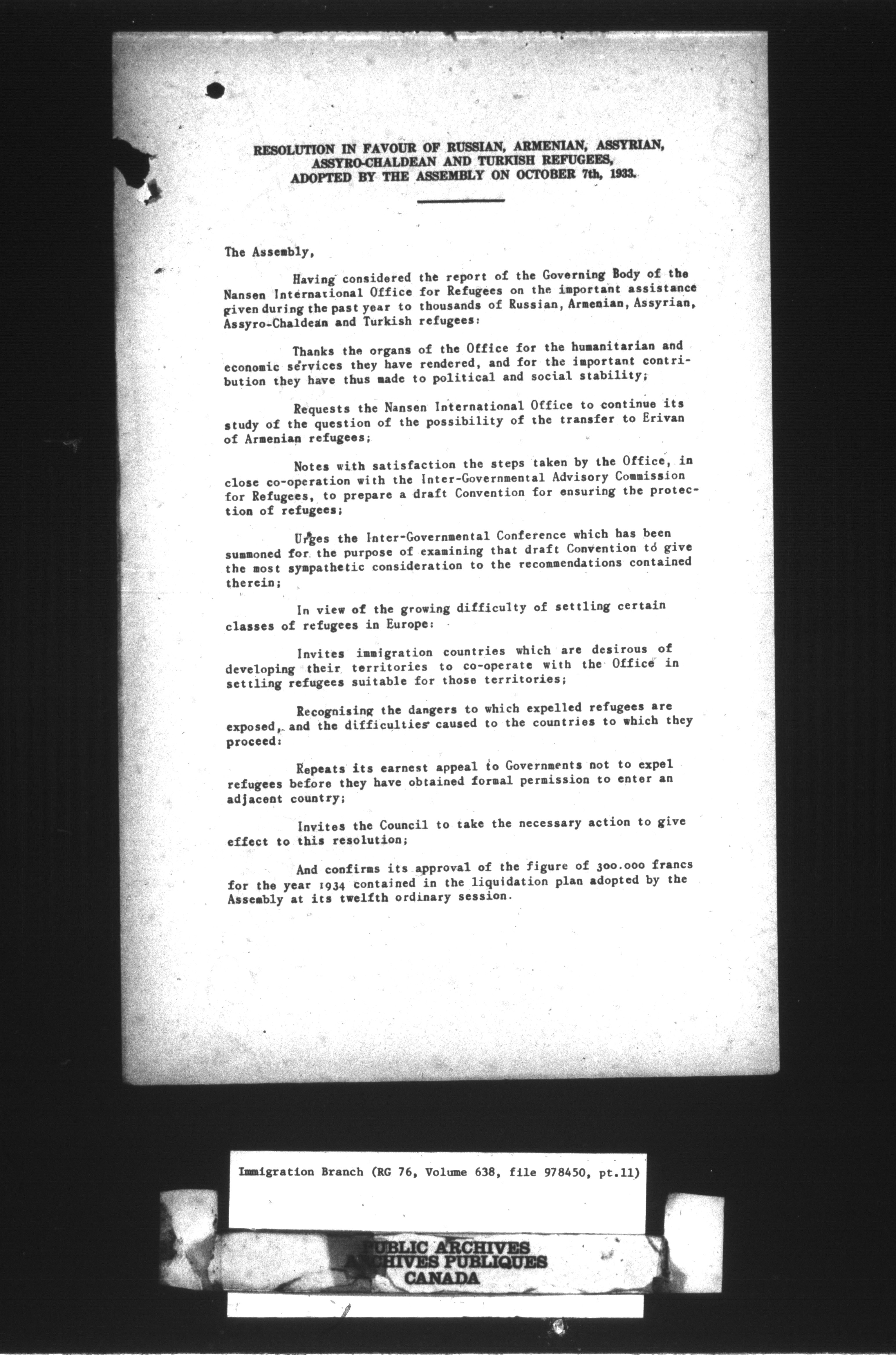 Immigration Program : Headquarters central registry files : C-10579