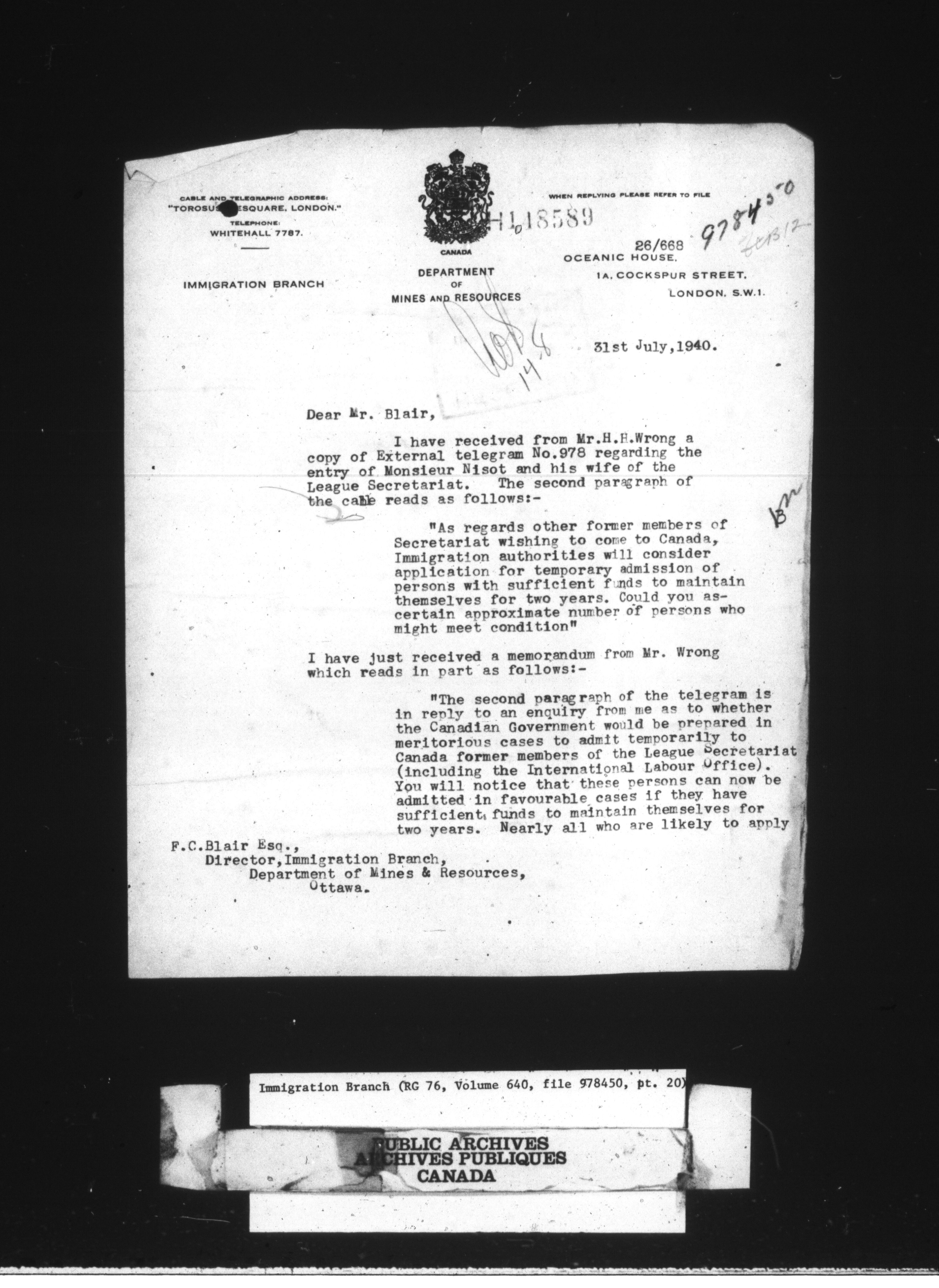 Subject, policy and case files in the First Central Registry series of the Immigration Program, 1892-1950 - 10580