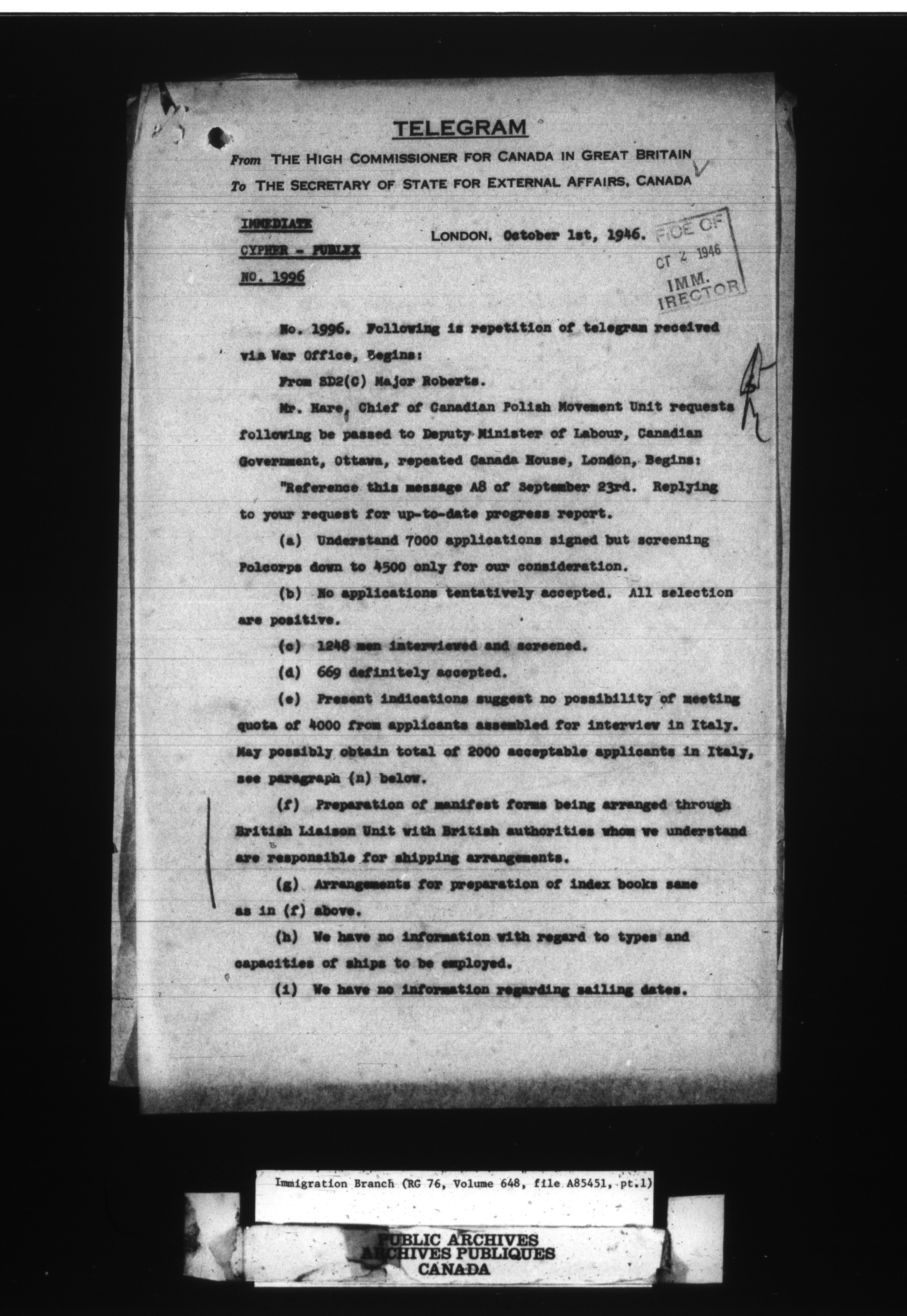 Subject, policy and case files in the First Central Registry series of the Immigration Program, 1892-1950 - 10587