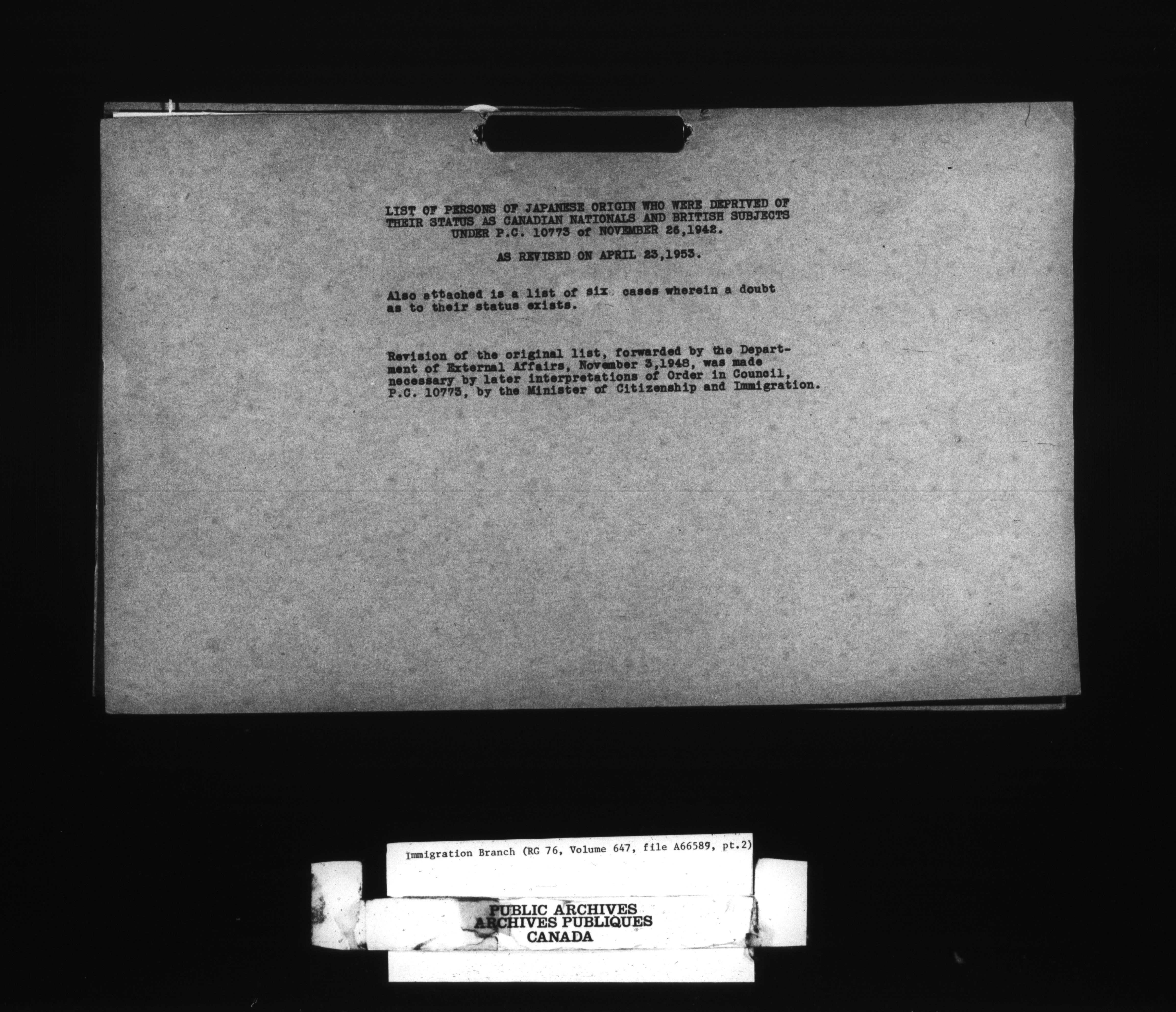 Subject, policy and case files in the First Central Registry series of the Immigration Program, 1892-1950 - 10587