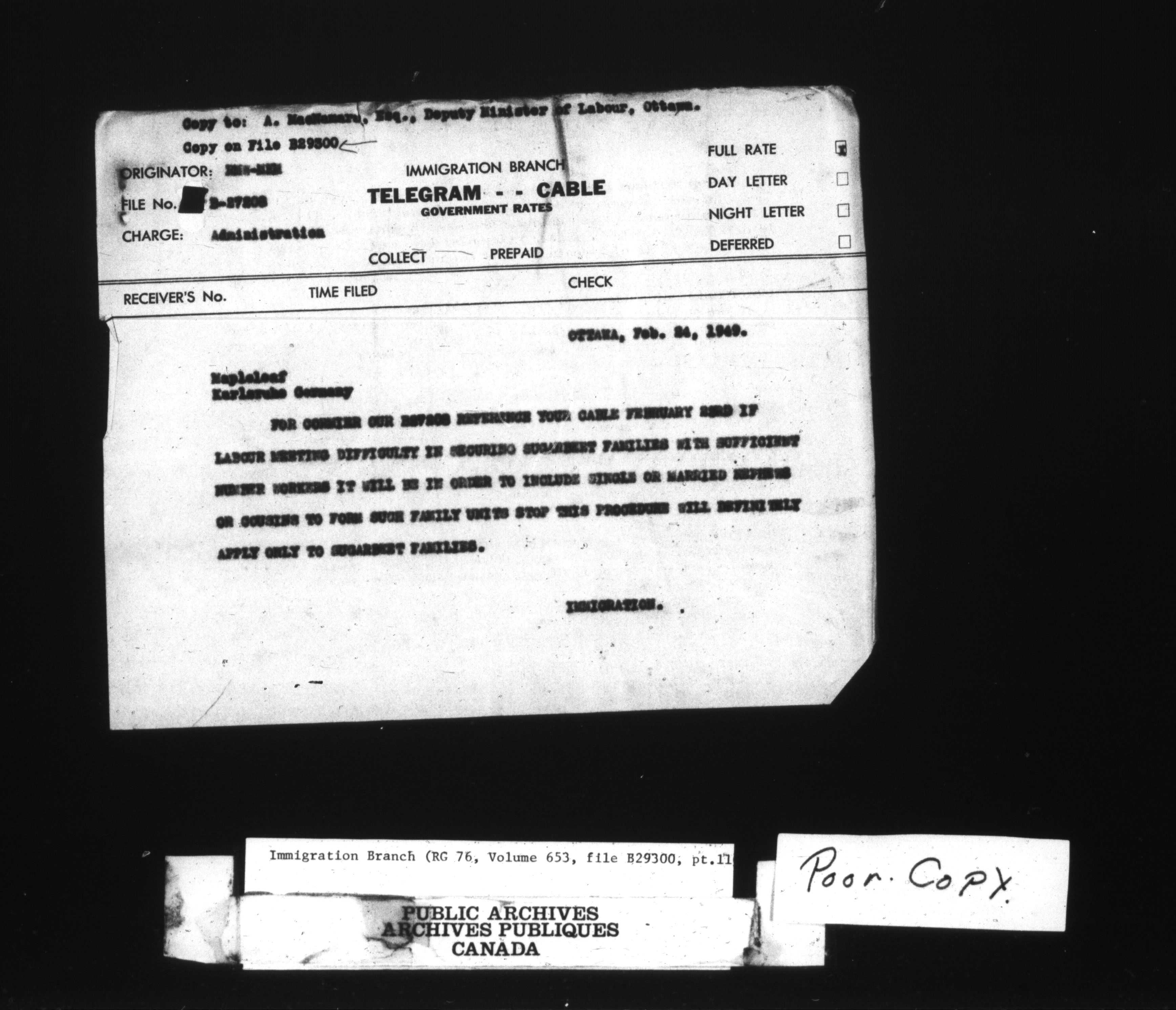 Subject, policy and case files in the First Central Registry series of the Immigration Program, 1892-1950 - 10591