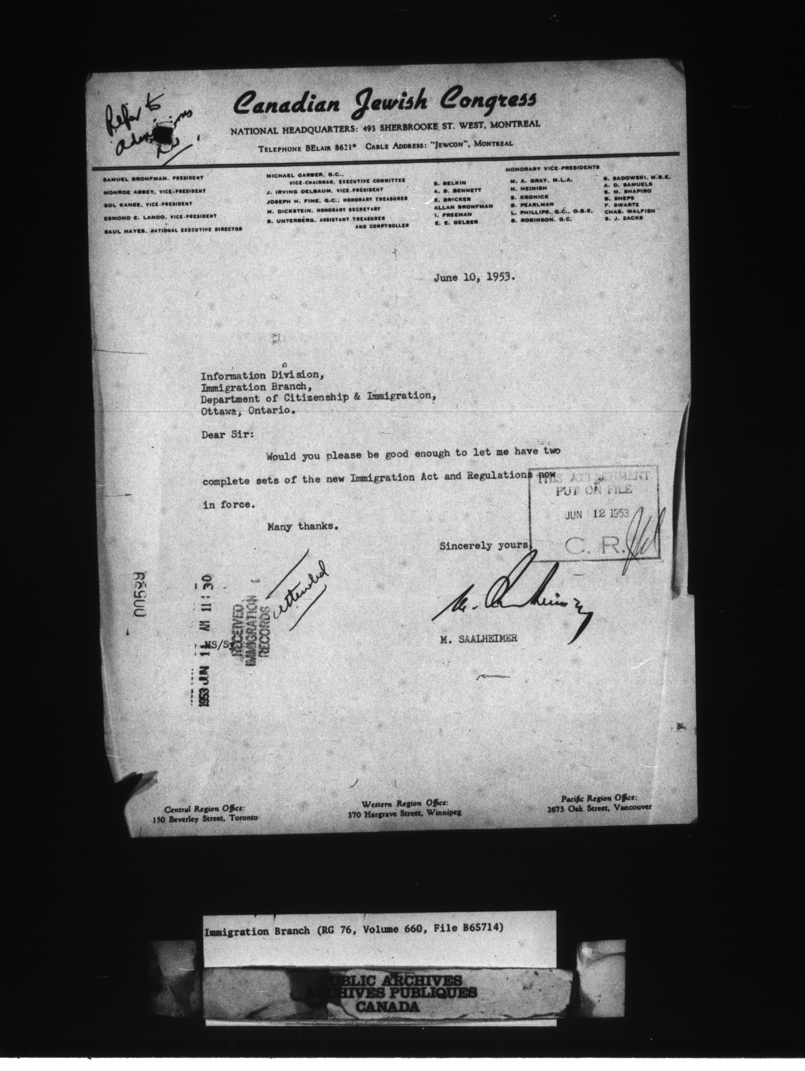 Subject, policy and case files in the First Central Registry series of the Immigration Program, 1892-1950 - 10595
