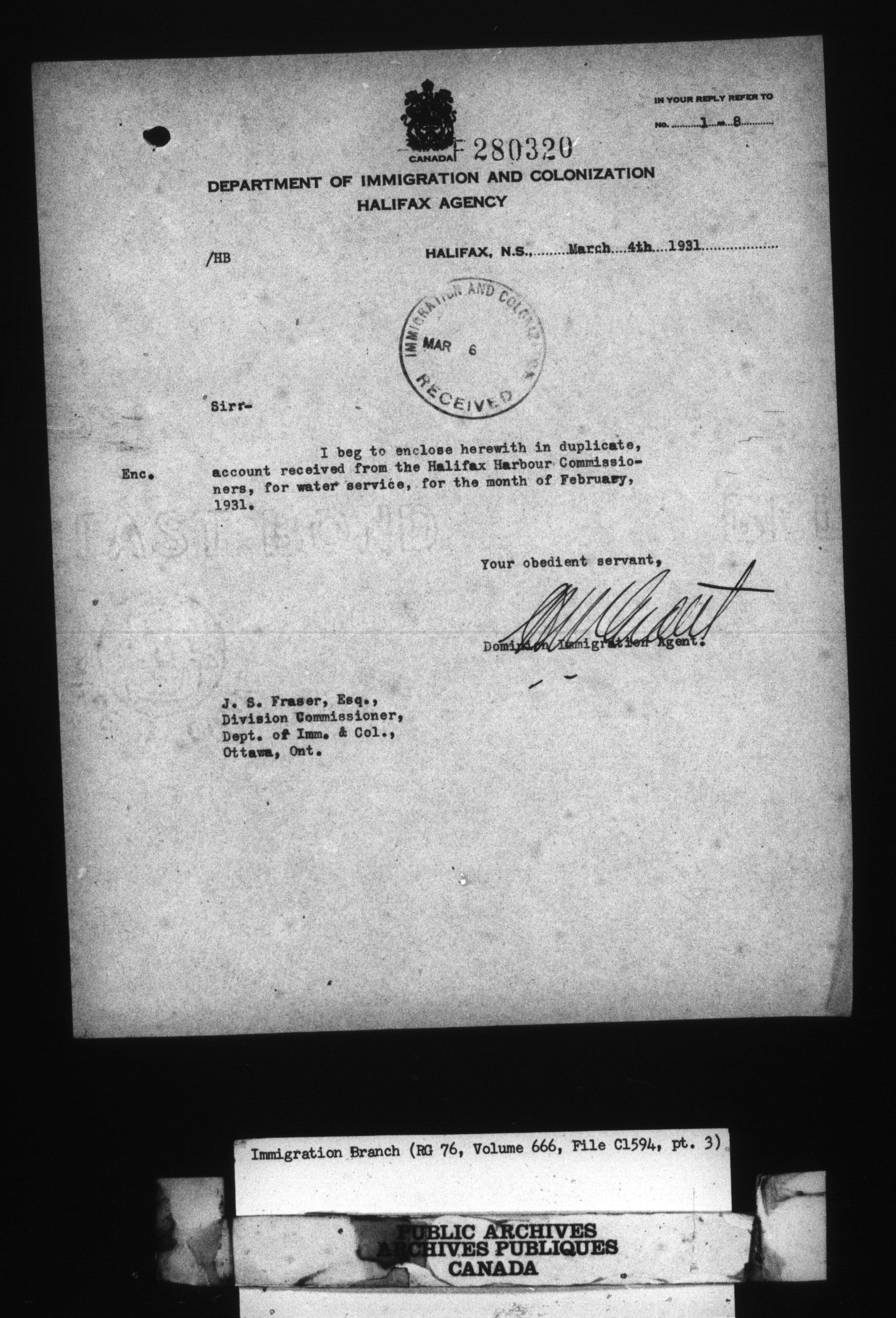 Subject, policy and case files in the First Central Registry series of the Immigration Program, 1892-1950 - 10602