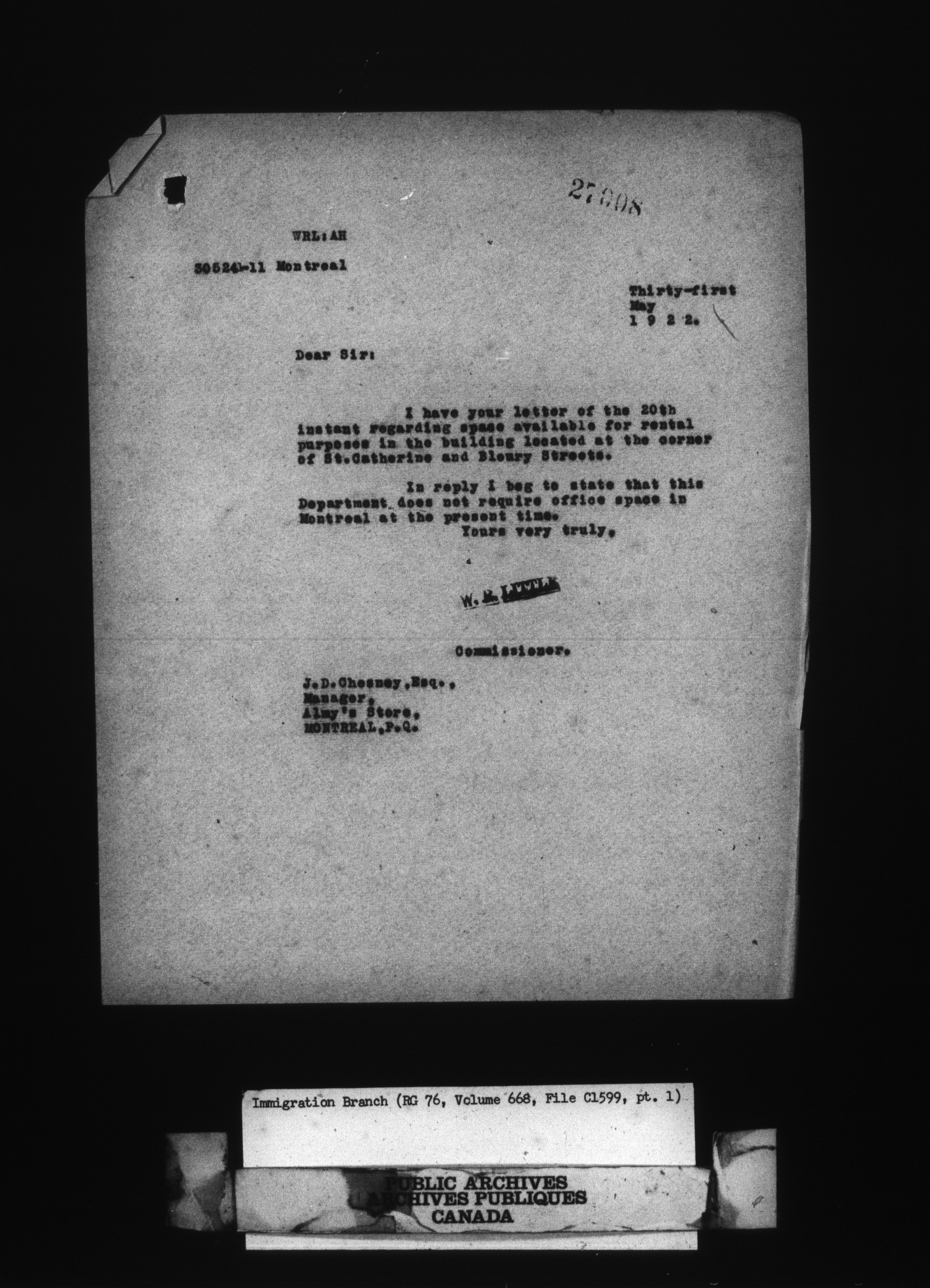 Subject, policy and case files in the First Central Registry series of the Immigration Program, 1892-1950 - 10601
