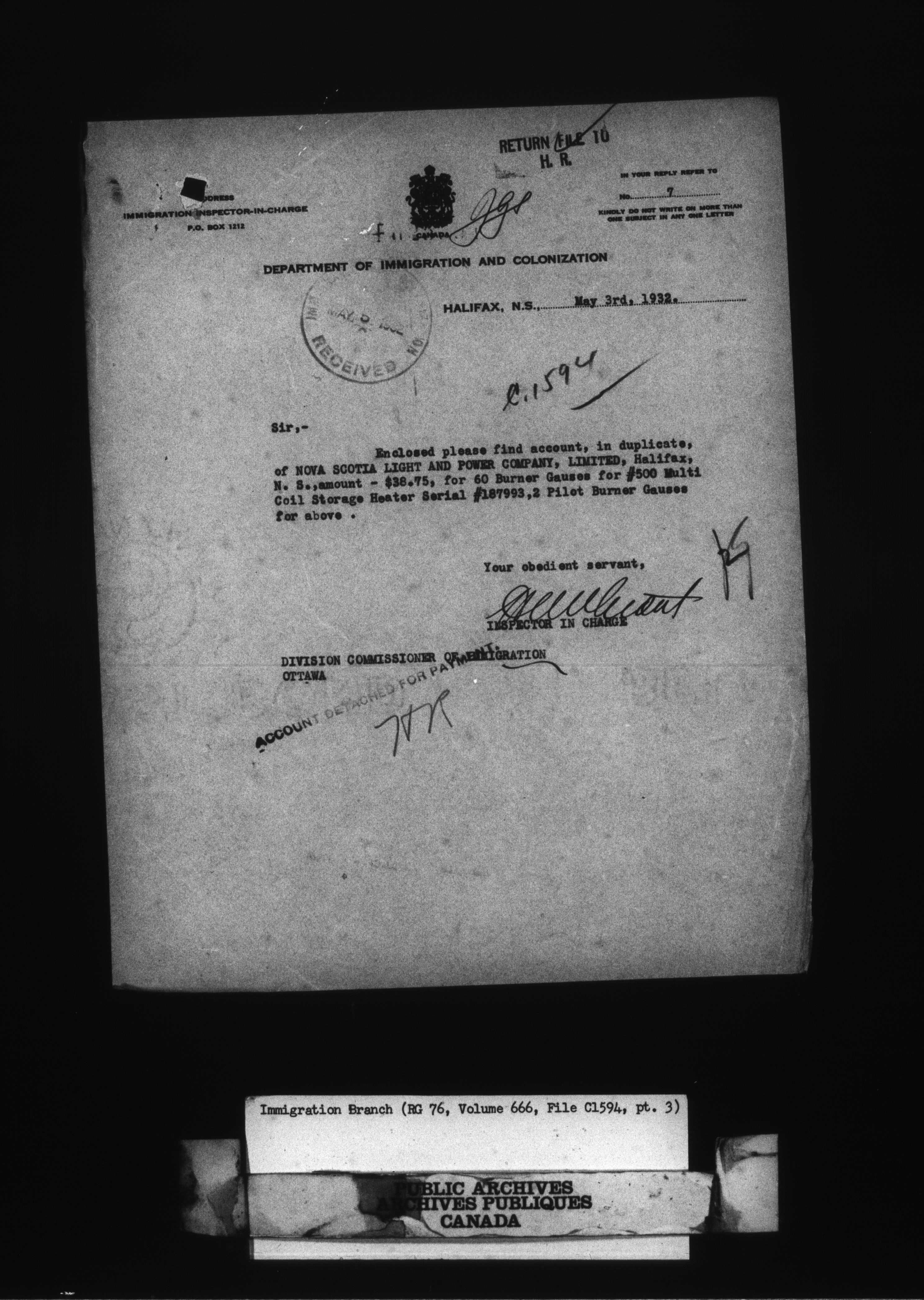 Subject, policy and case files in the First Central Registry series of the Immigration Program, 1892-1950 - 10601
