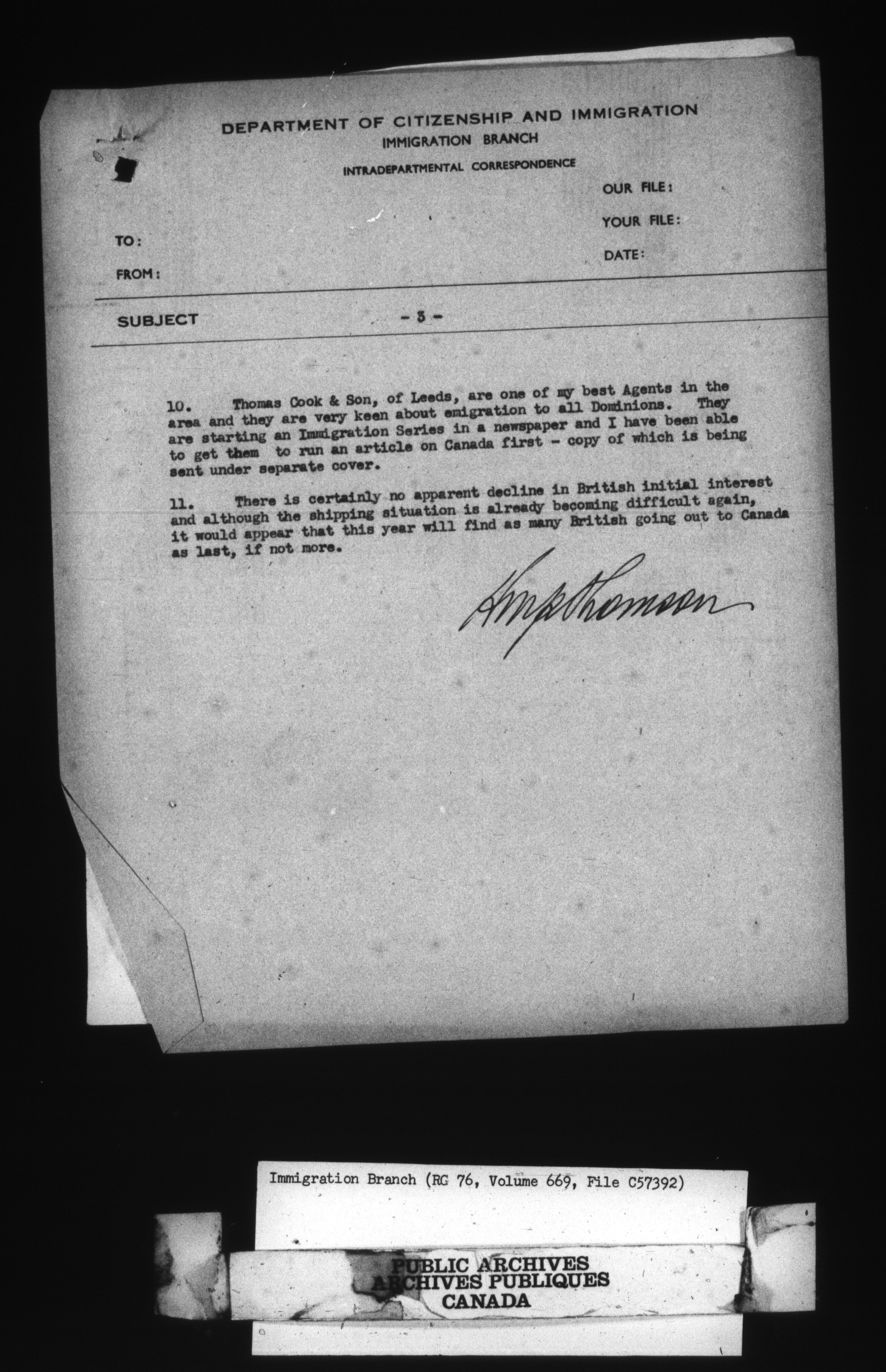 Subject, policy and case files in the First Central Registry series of the Immigration Program, 1892-1950 - 10603