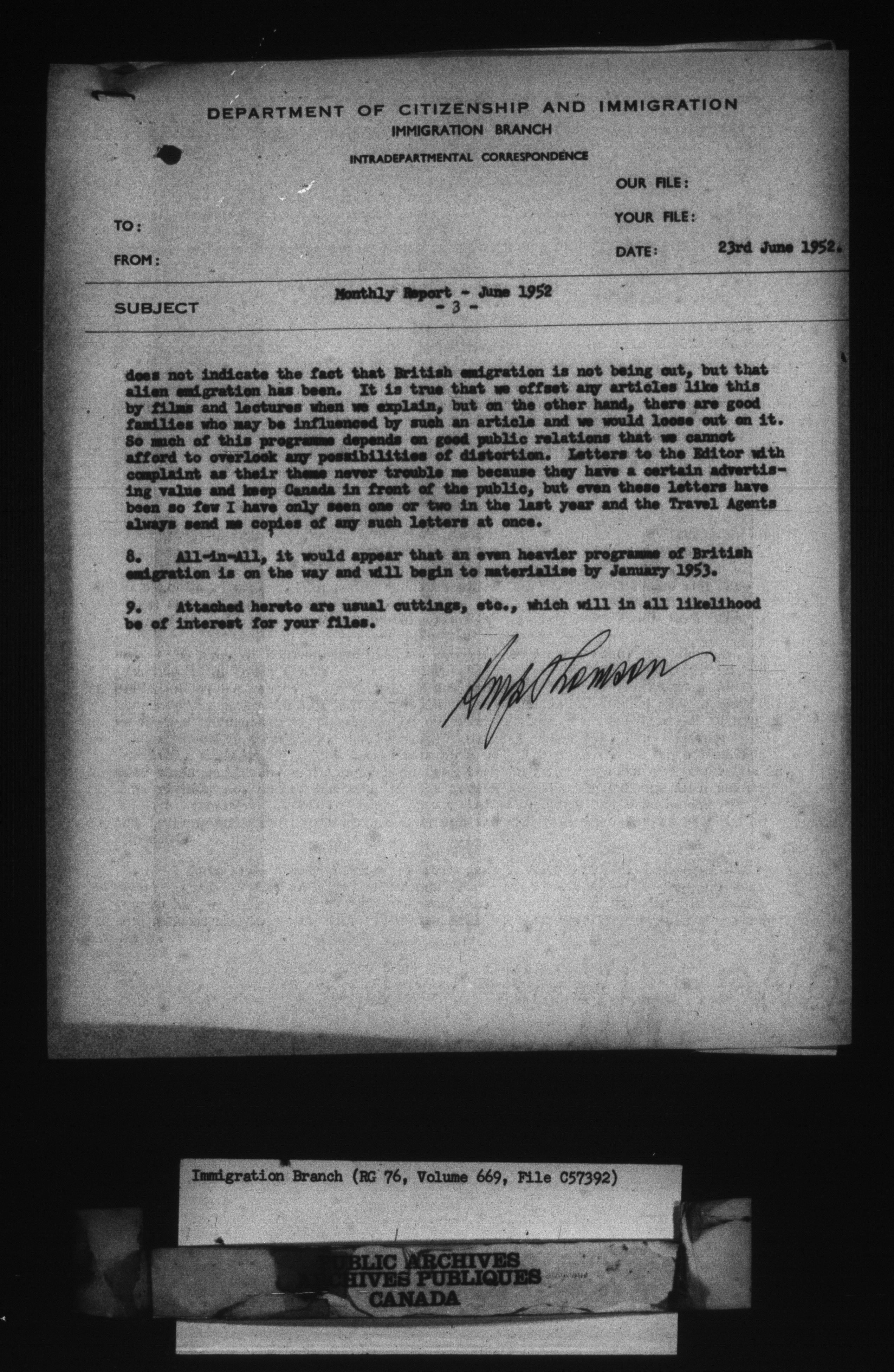 Subject, policy and case files in the First Central Registry series of the Immigration Program, 1892-1950 - 10603