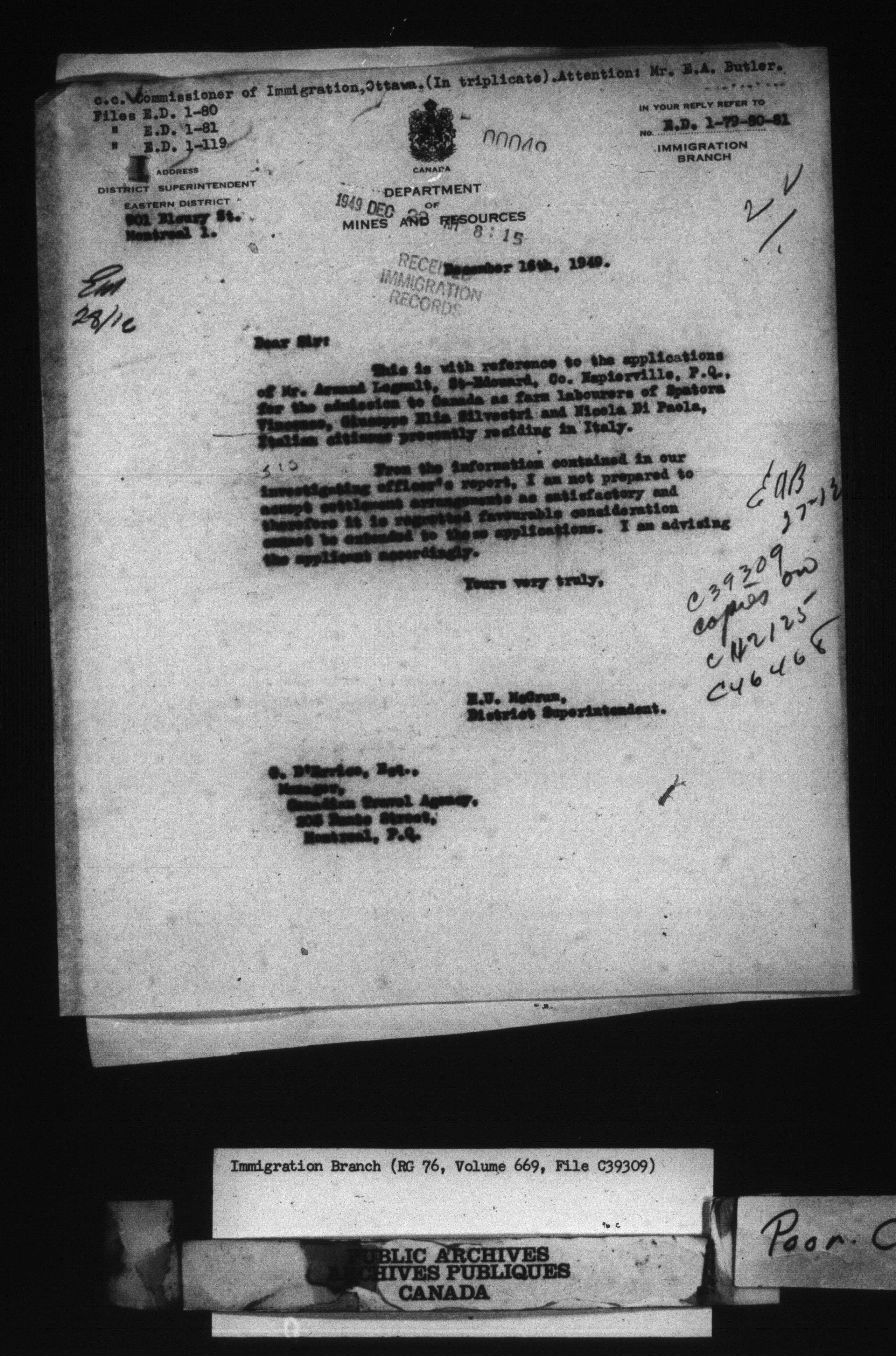 Subject, policy and case files in the First Central Registry series of the Immigration Program, 1892-1950 - 10603
