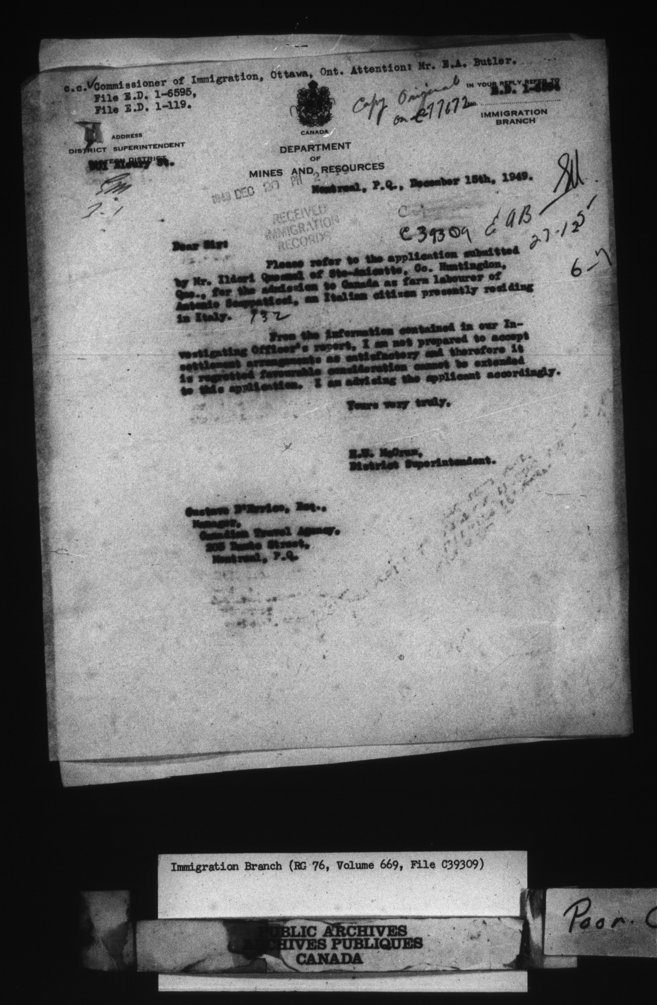 Subject, policy and case files in the First Central Registry series of the Immigration Program, 1892-1950 - 10603