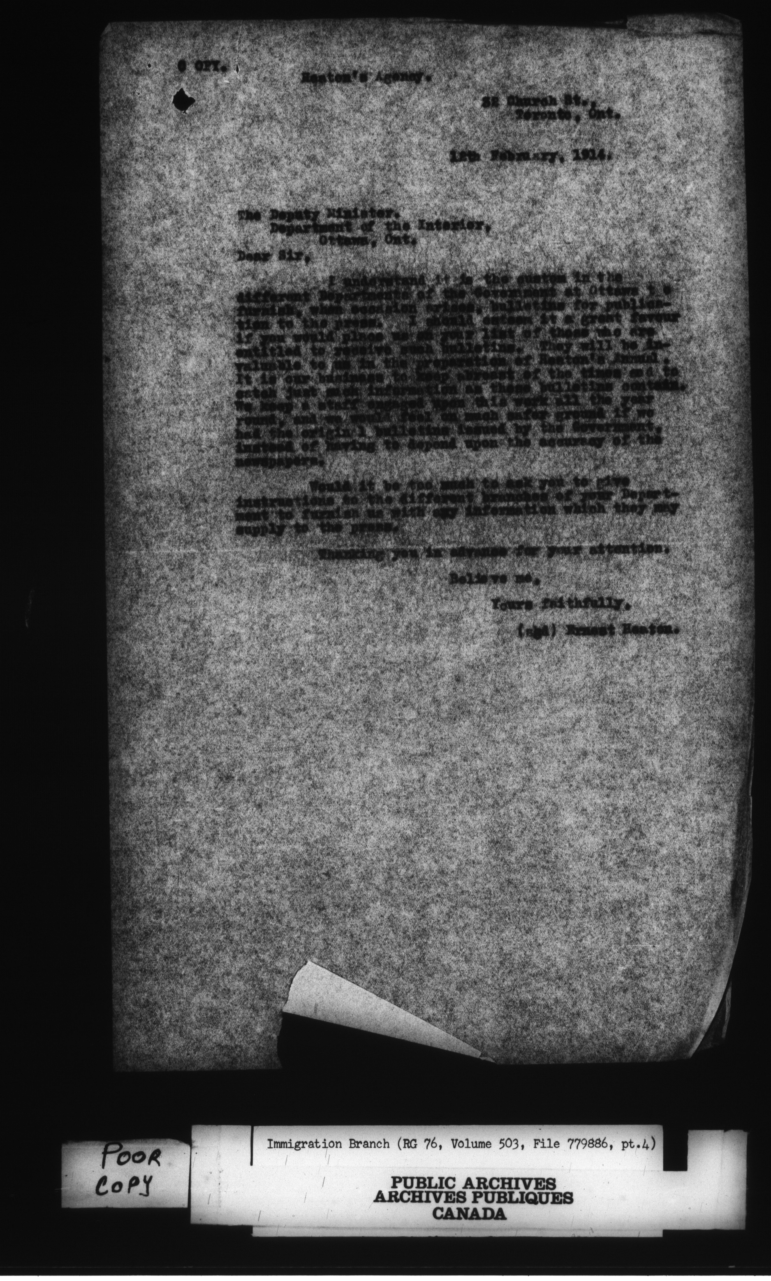 Subject, policy and case files in the First Central Registry series of the Immigration Program, 1892-1950 - 10605