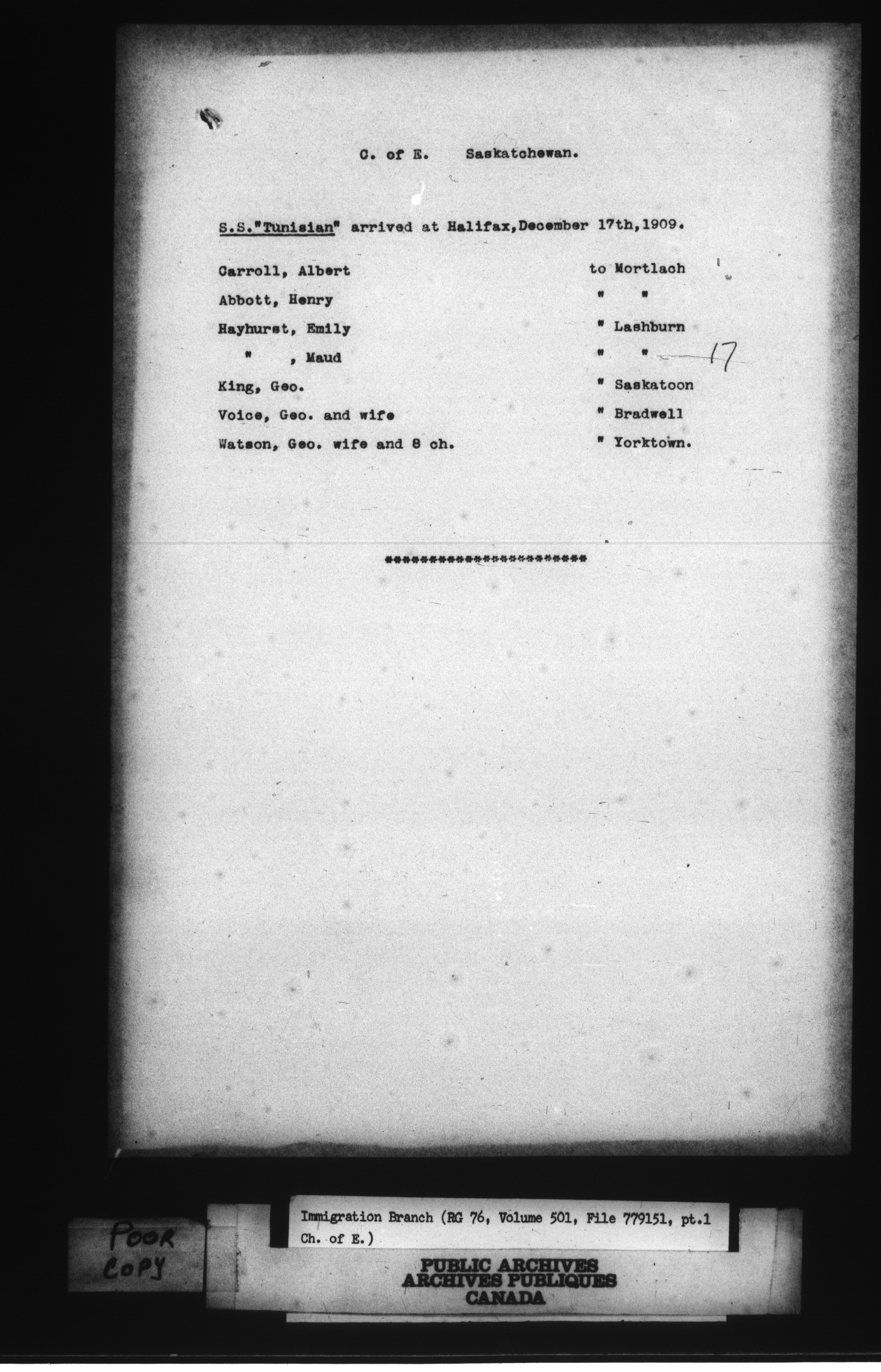 Subject, policy and case files in the First Central Registry series of the Immigration Program, 1892-1950 - 10605