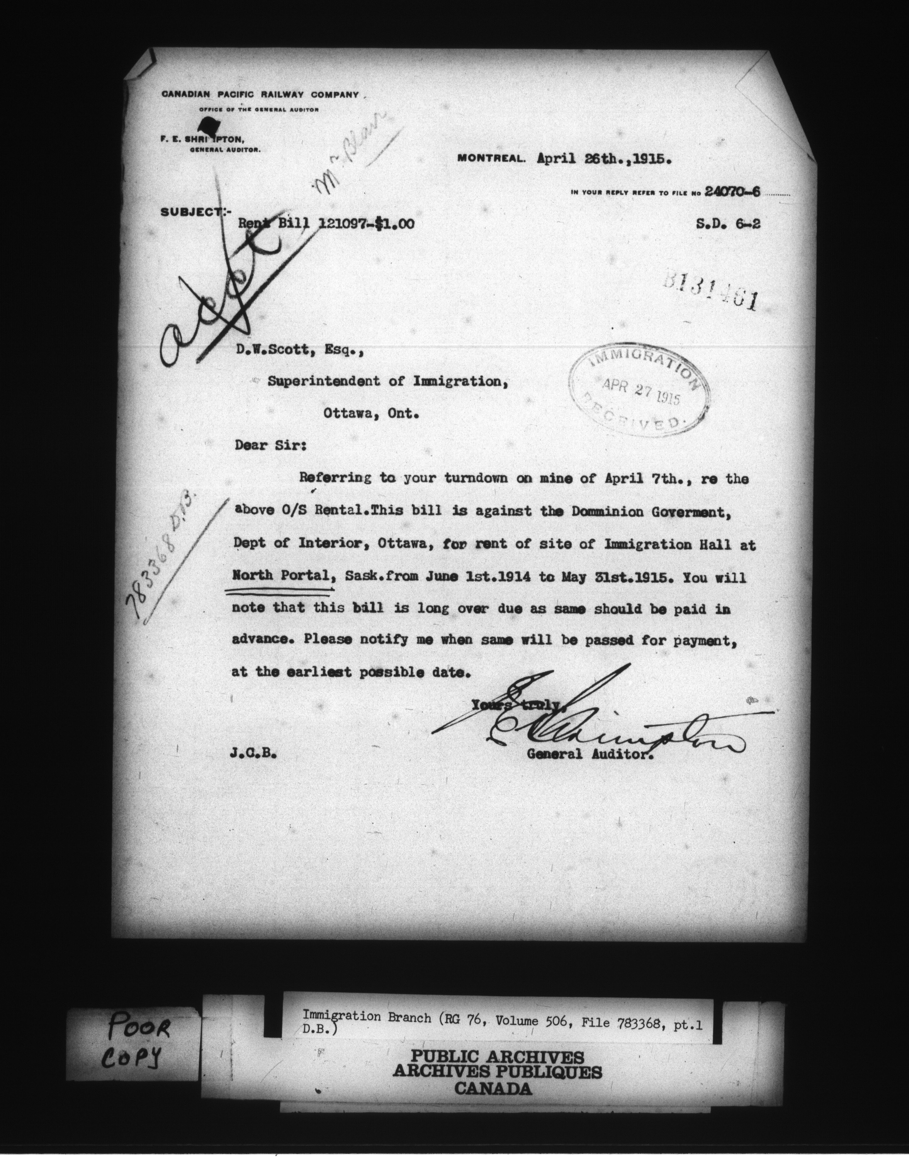 Subject, policy and case files in the First Central Registry series of the Immigration Program, 1892-1950 - 10607