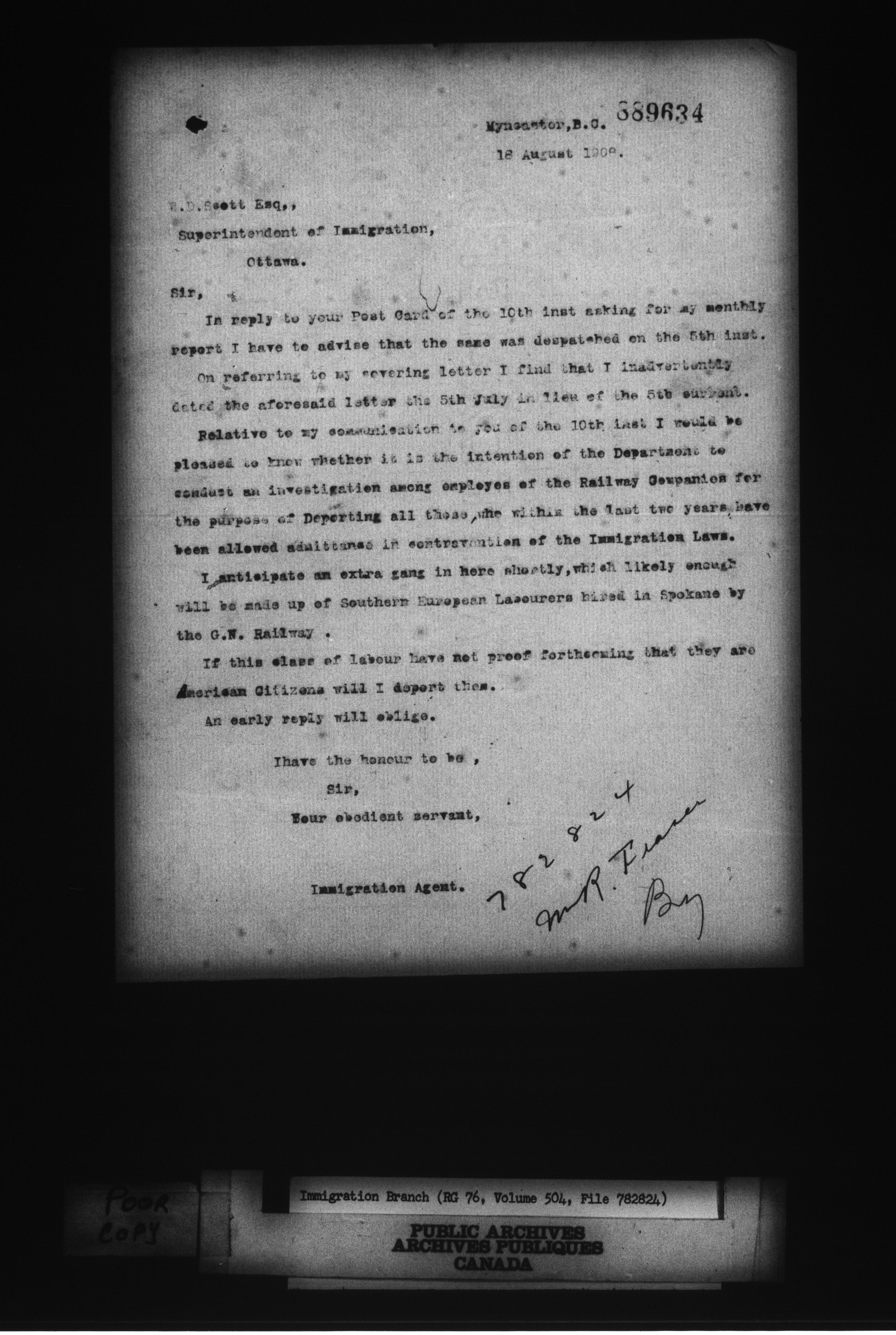 Subject, policy and case files in the First Central Registry series of the Immigration Program, 1892-1950 - 10607