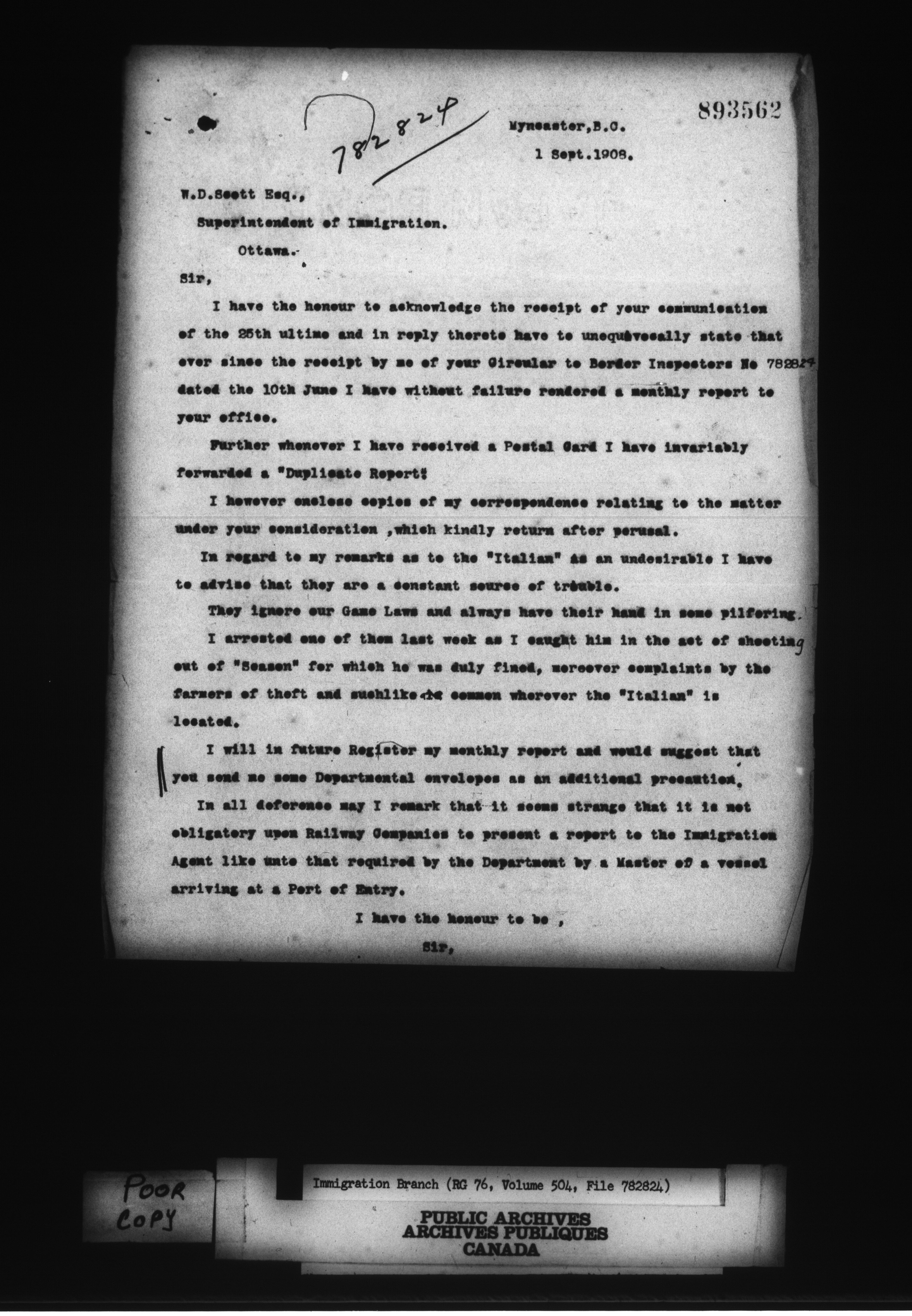 Subject, policy and case files in the First Central Registry series of the Immigration Program, 1892-1950 - 10607