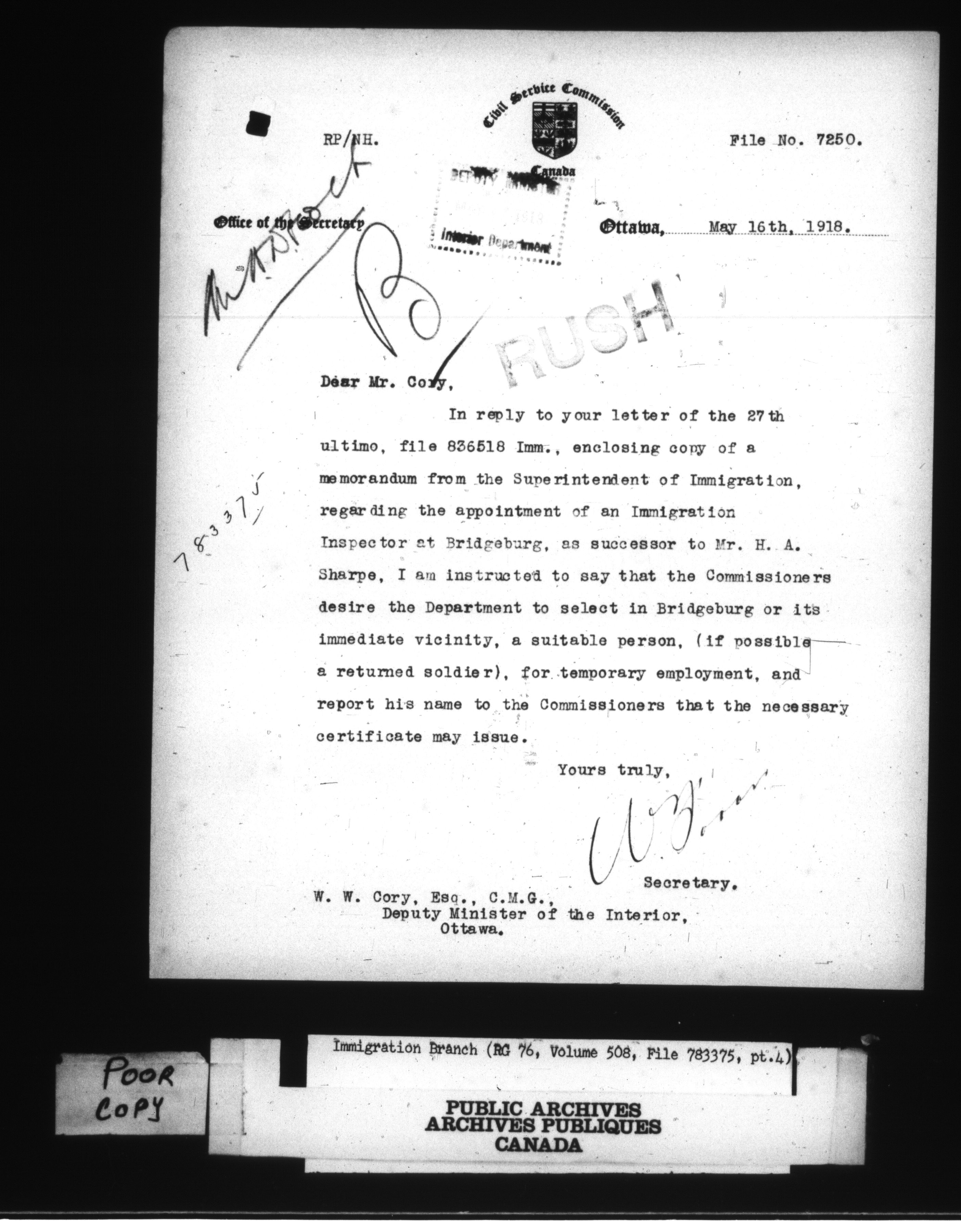 Subject, policy and case files in the First Central Registry series of the Immigration Program, 1892-1950 - 10608