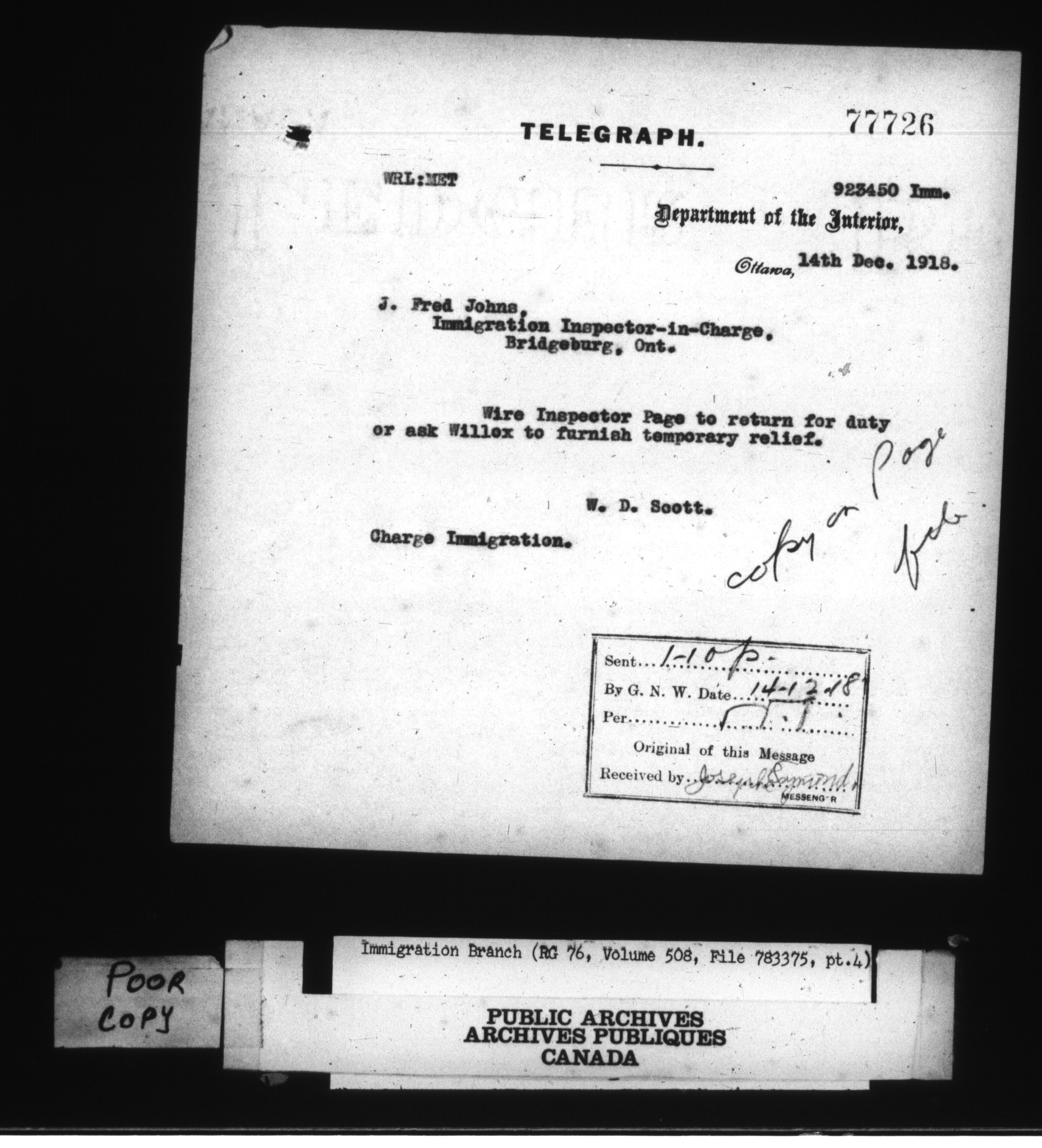 Subject, policy and case files in the First Central Registry series of the Immigration Program, 1892-1950 - 10608