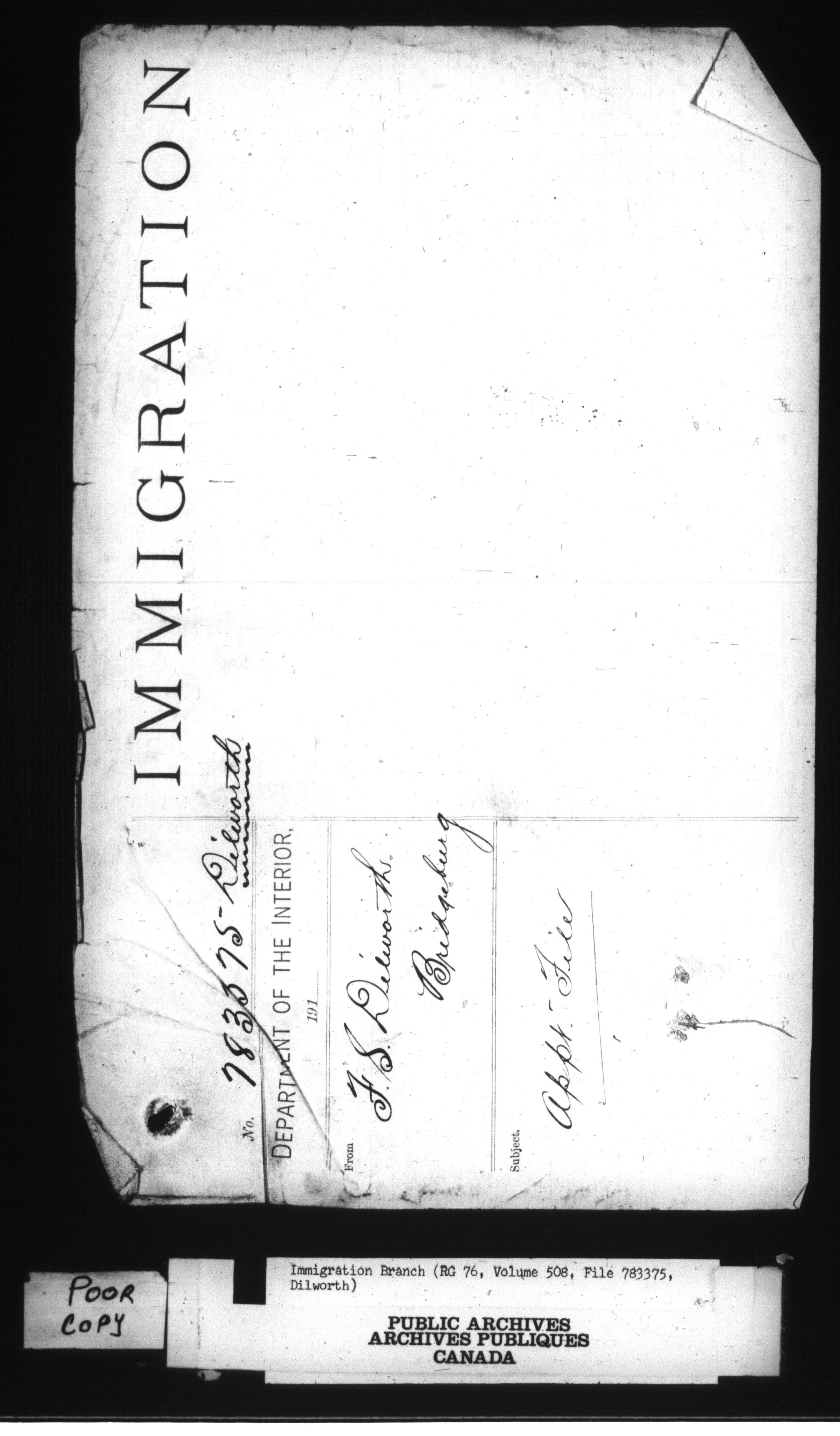 Subject, policy and case files in the First Central Registry series of the Immigration Program, 1892-1950 - 10608