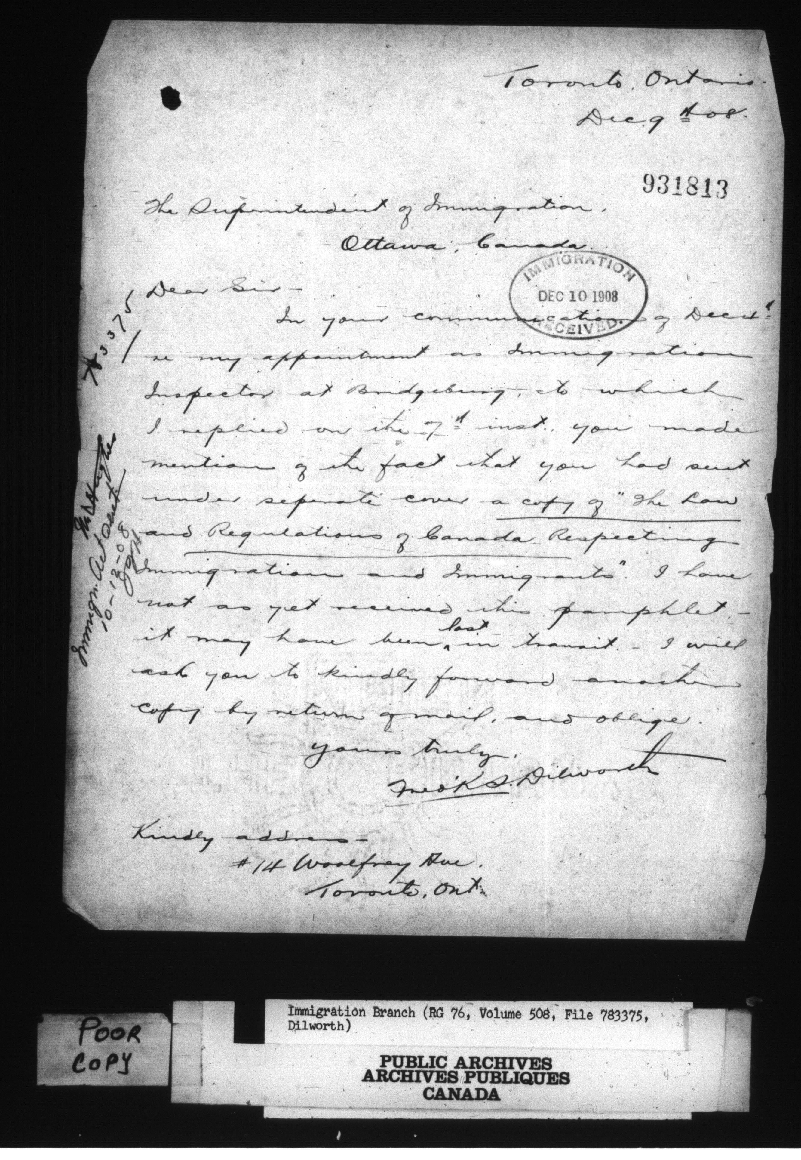 Subject, policy and case files in the First Central Registry series of the Immigration Program, 1892-1950 - 10608