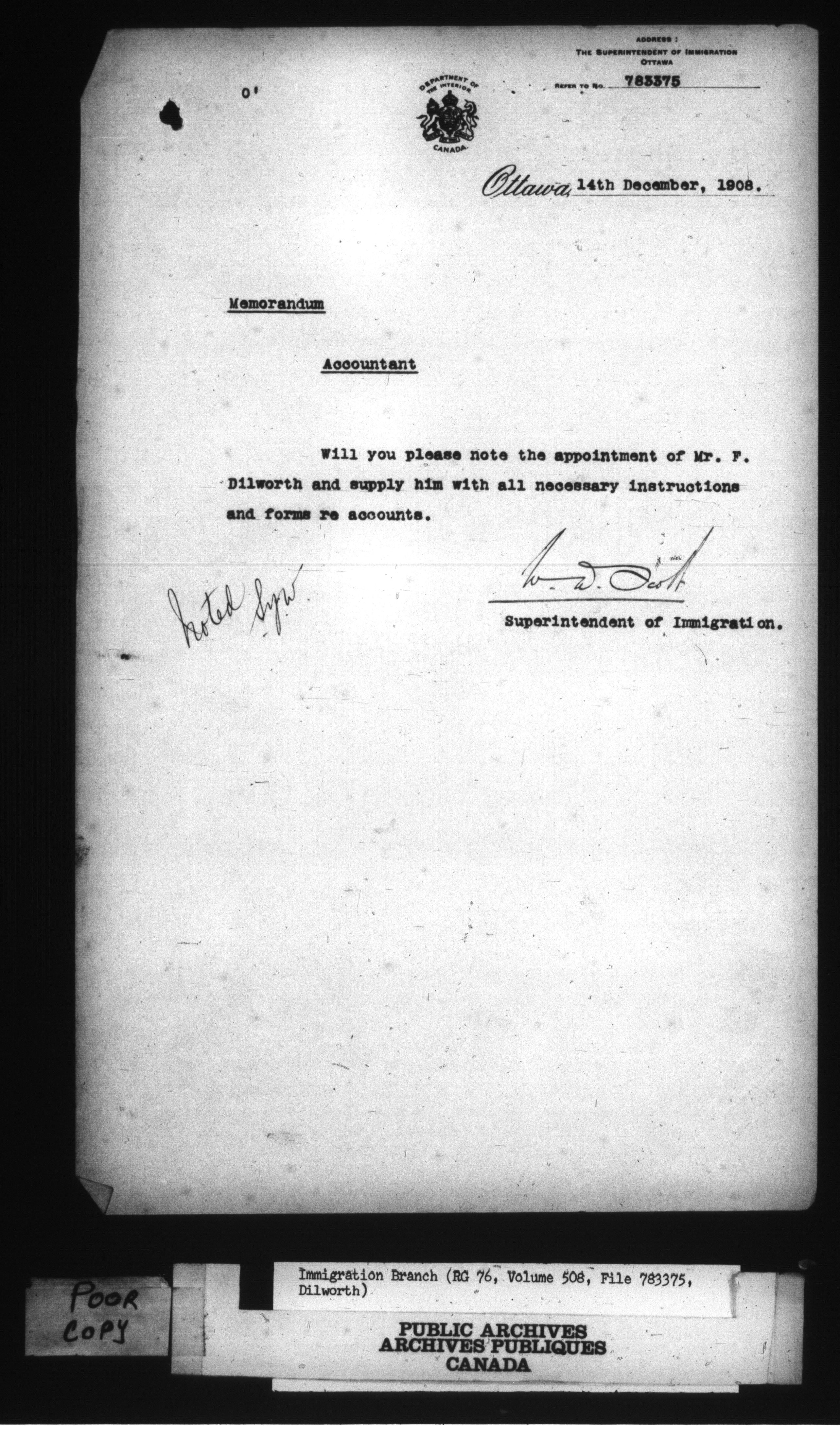 Subject, policy and case files in the First Central Registry series of the Immigration Program, 1892-1950 - 10608