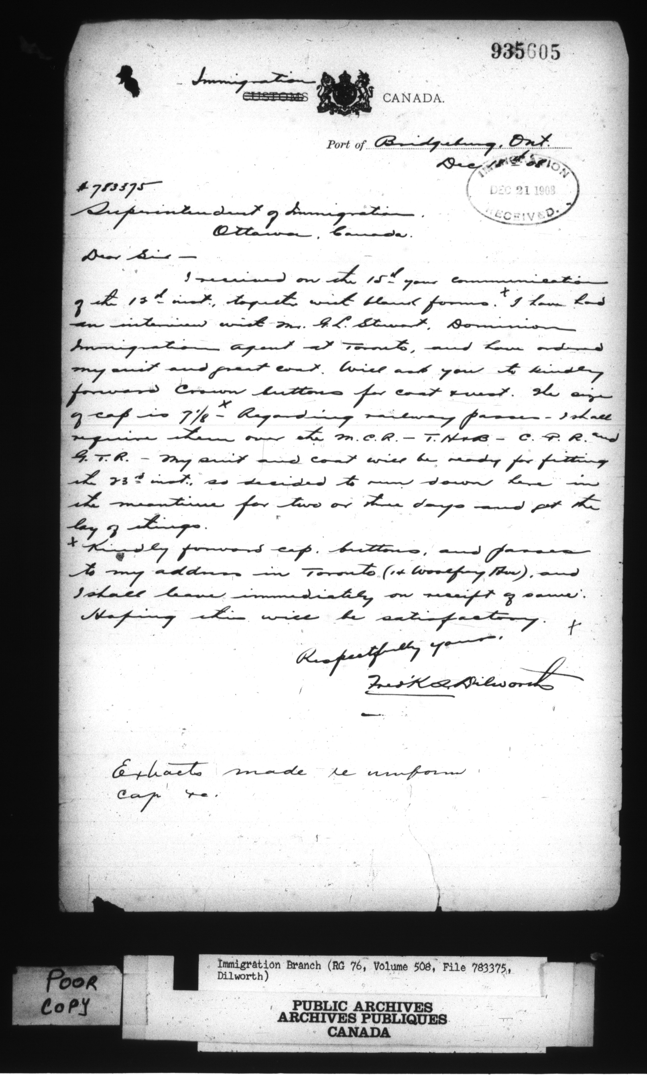Subject, policy and case files in the First Central Registry series of the Immigration Program, 1892-1950 - 10608