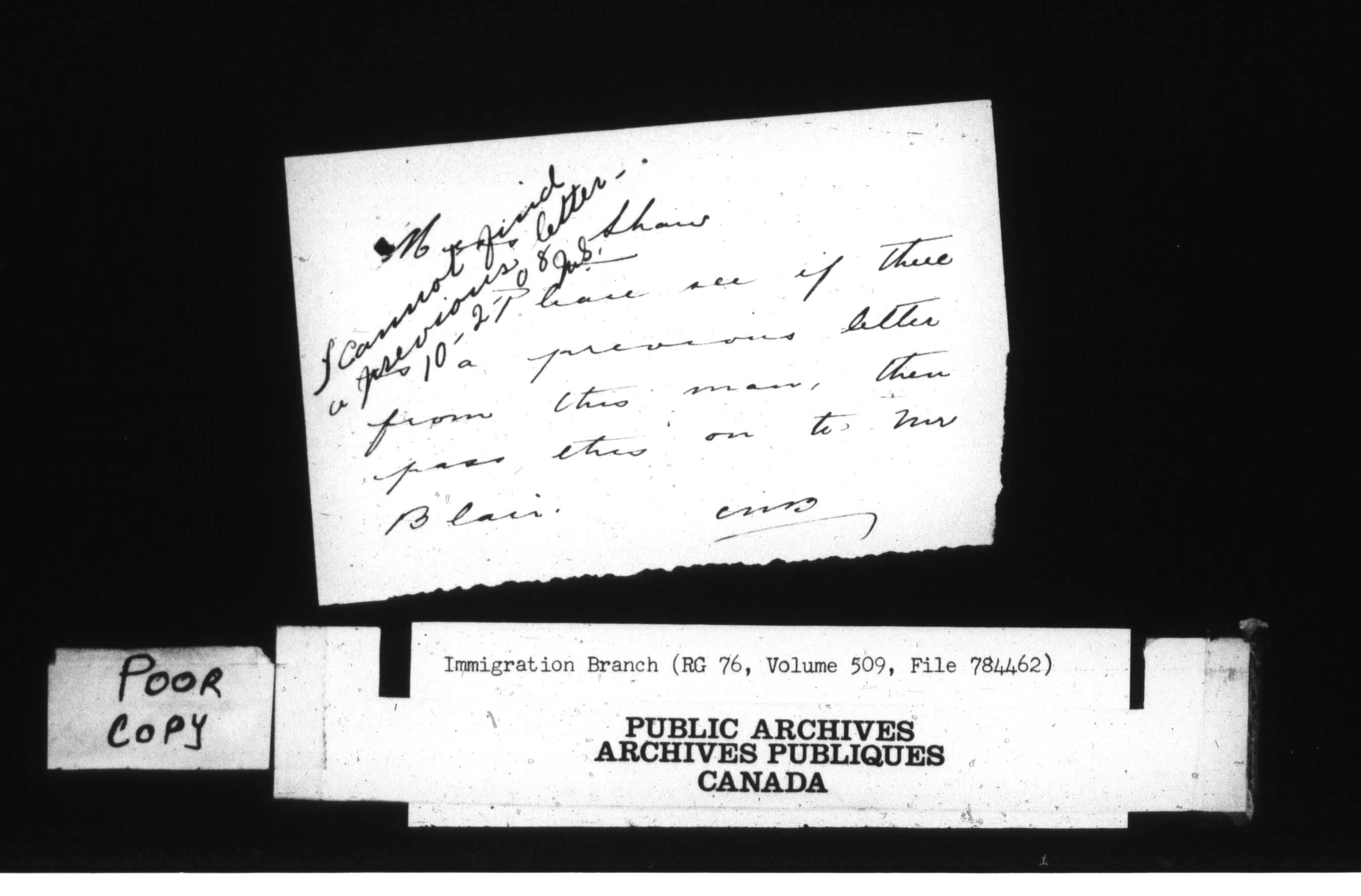 Subject, policy and case files in the First Central Registry series of the Immigration Program, 1892-1950 - 10609