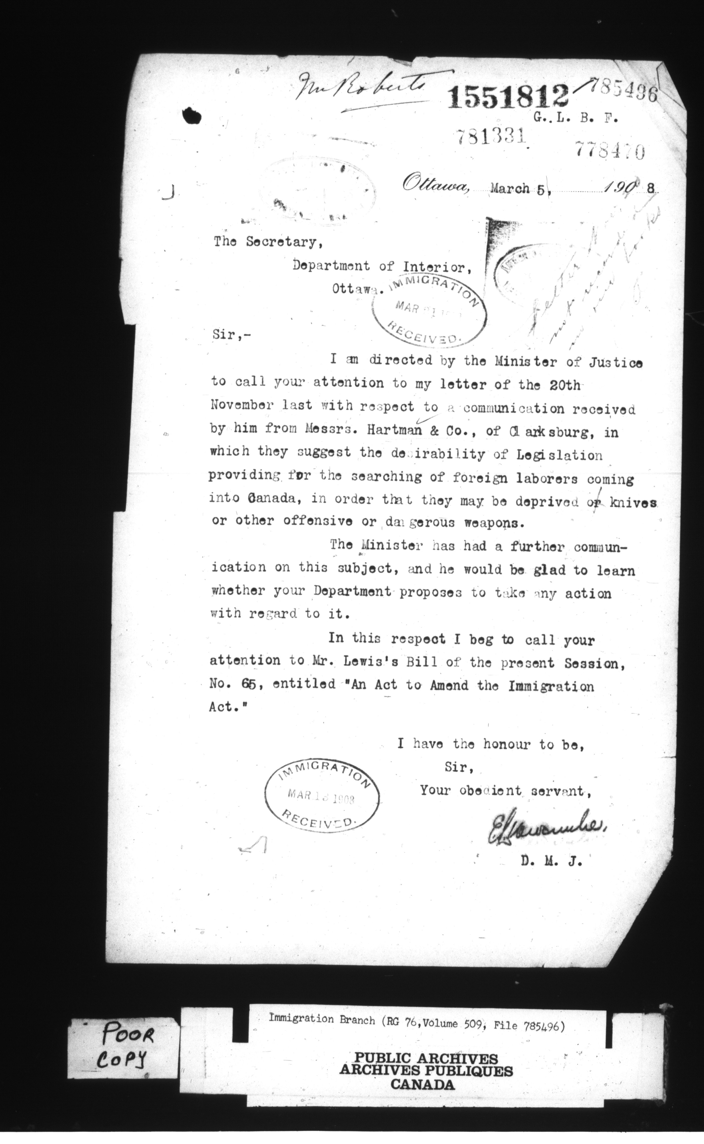 Subject, policy and case files in the First Central Registry series of the Immigration Program, 1892-1950 - 10609