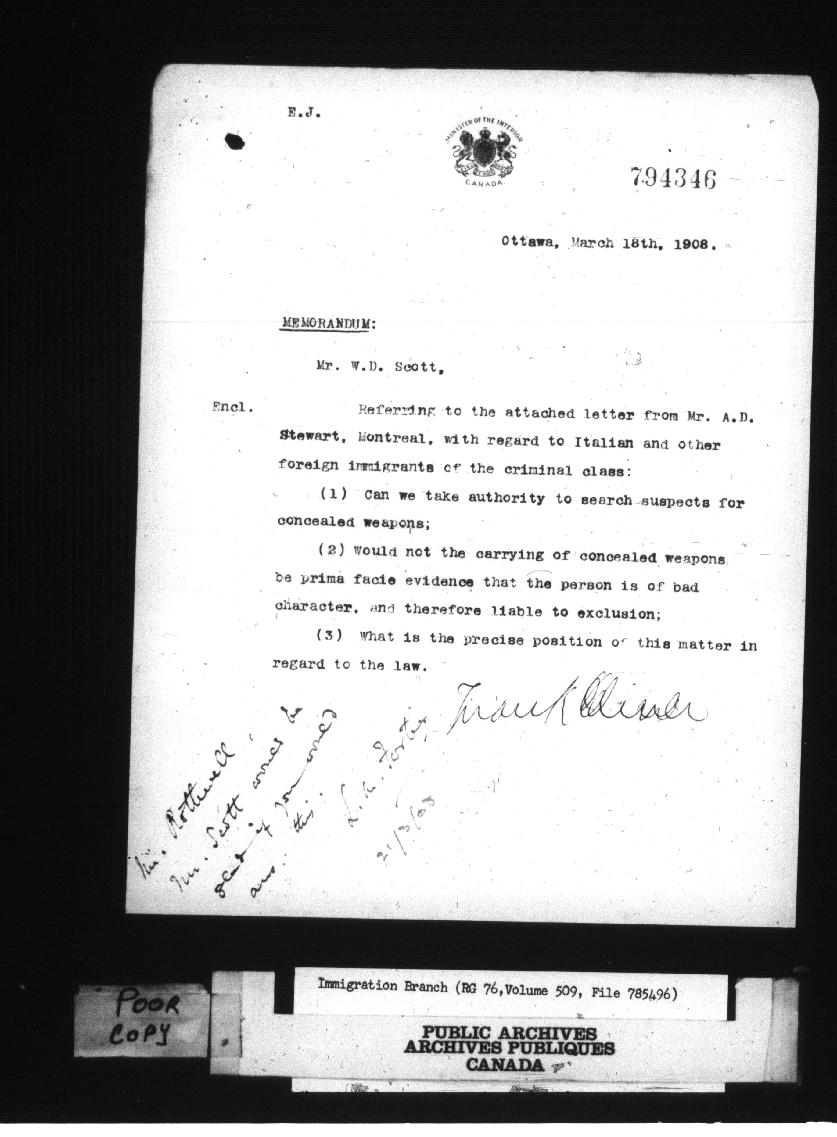 Subject, policy and case files in the First Central Registry series of the Immigration Program, 1892-1950 - 10609