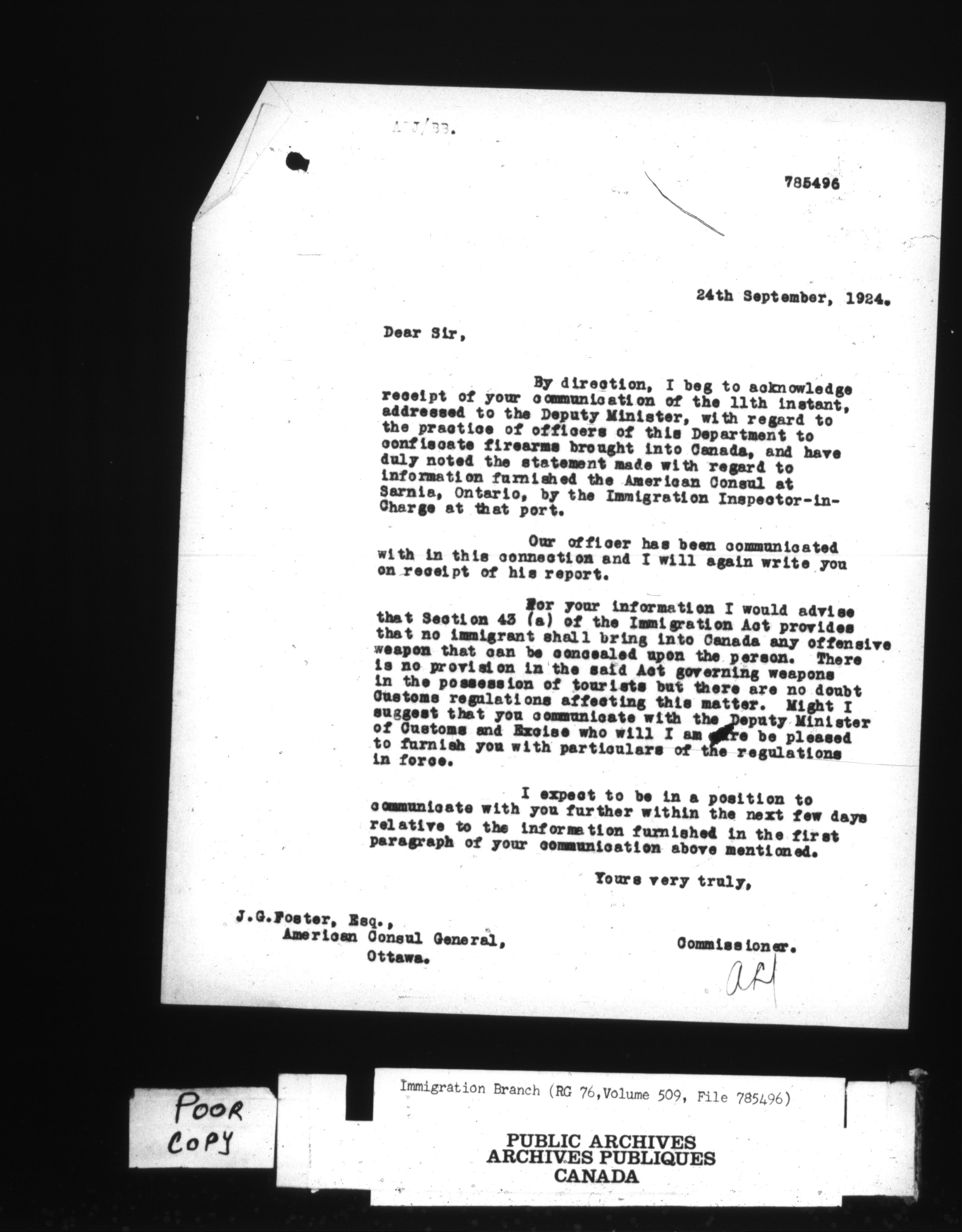 Subject, policy and case files in the First Central Registry series of the Immigration Program, 1892-1950 - 10610
