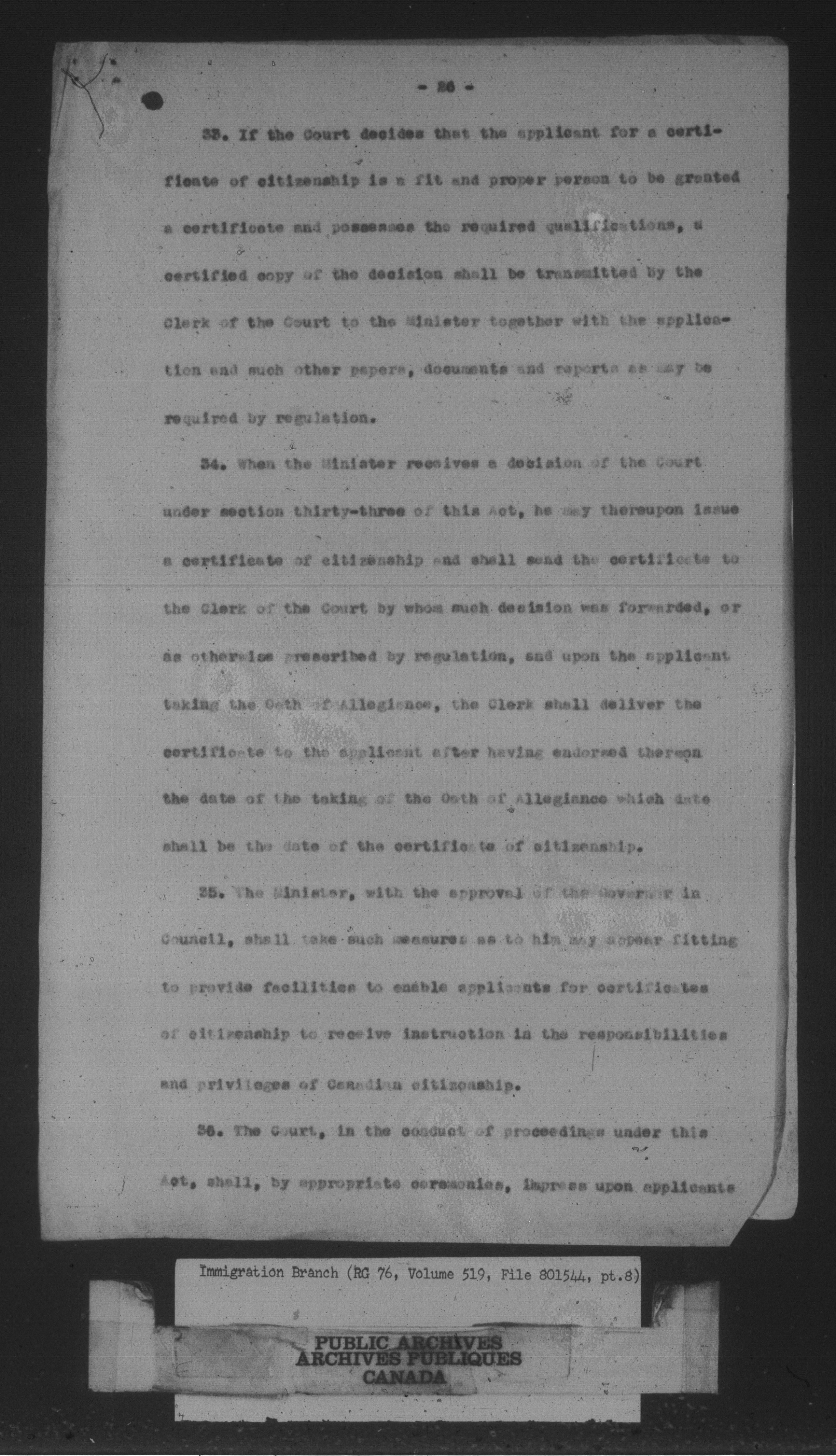 Subject, policy and case files in the First Central Registry series of the Immigration Program, 1892-1950 - 10614