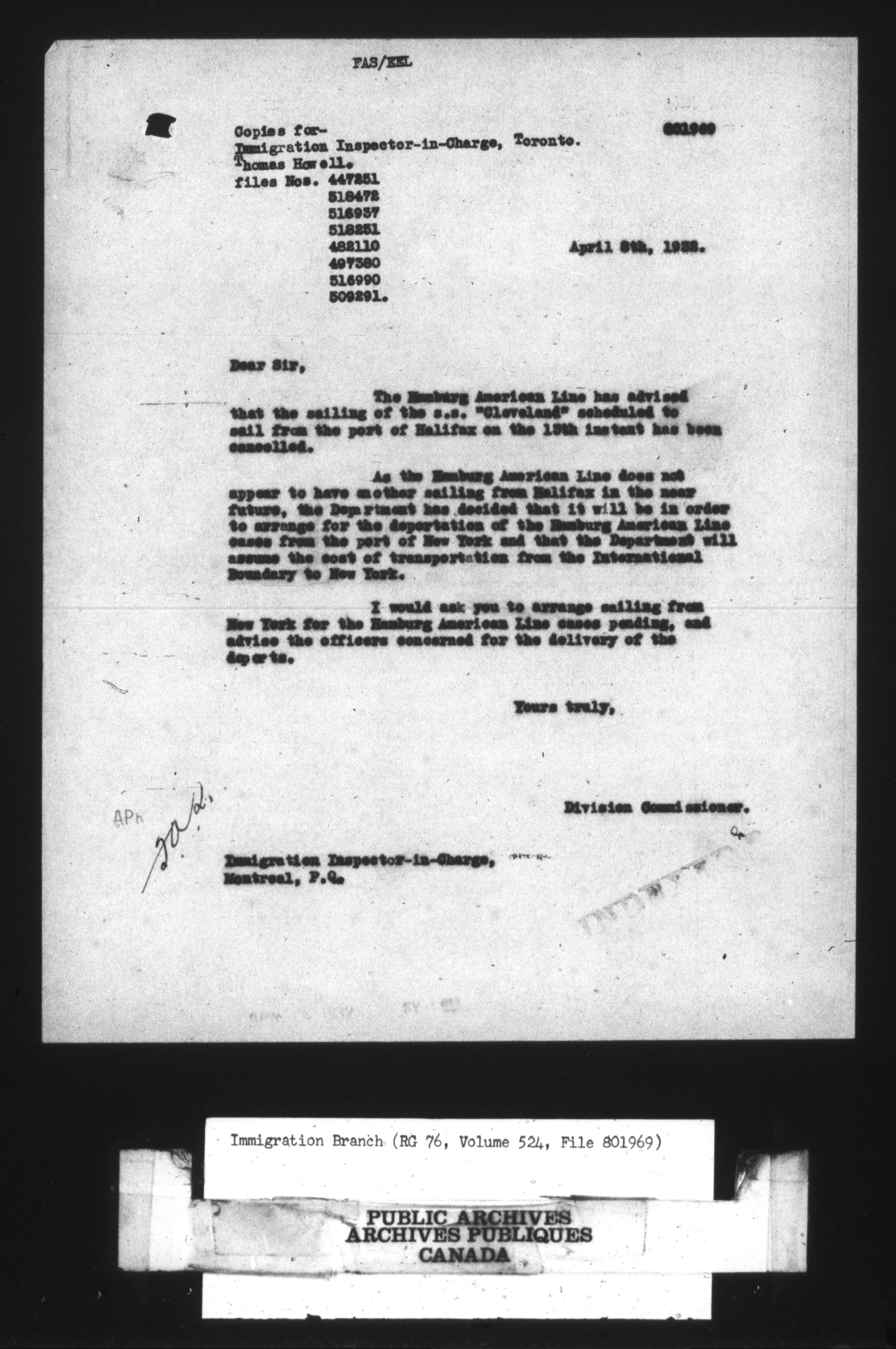 Subject, policy and case files in the First Central Registry series of the Immigration Program, 1892-1950 - 10618
