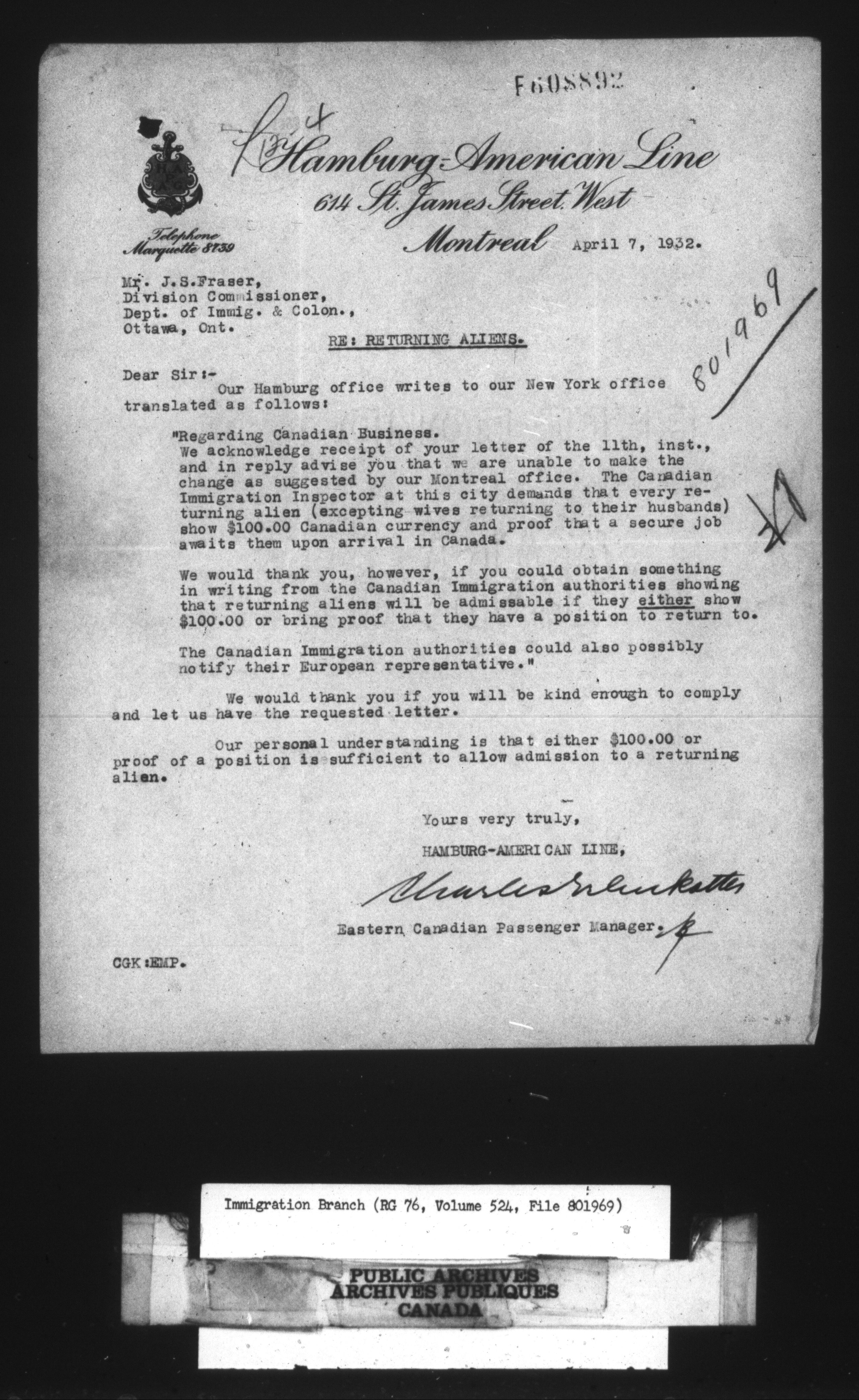Subject, policy and case files in the First Central Registry series of the Immigration Program, 1892-1950 - 10618