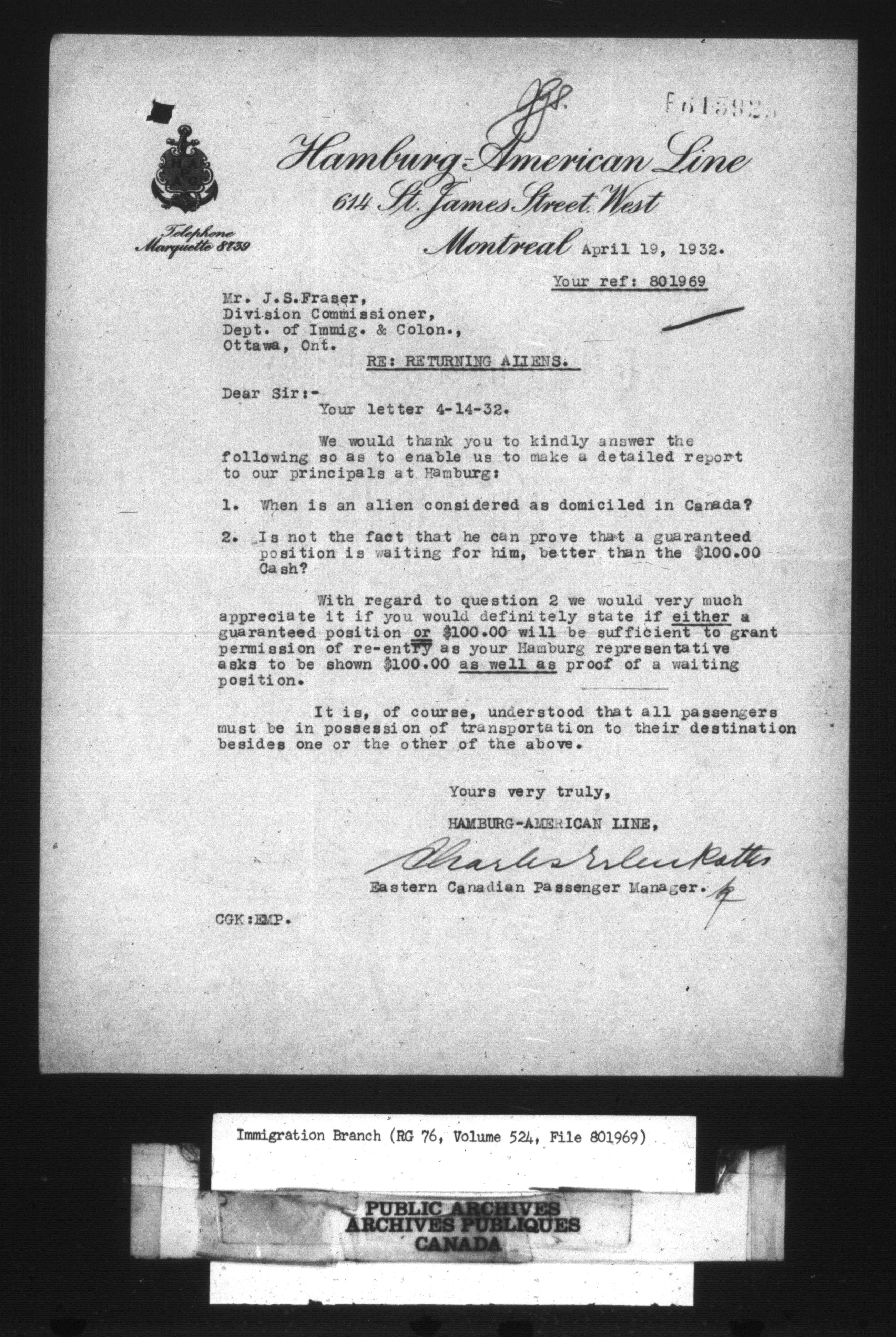 Subject, policy and case files in the First Central Registry series of the Immigration Program, 1892-1950 - 10618