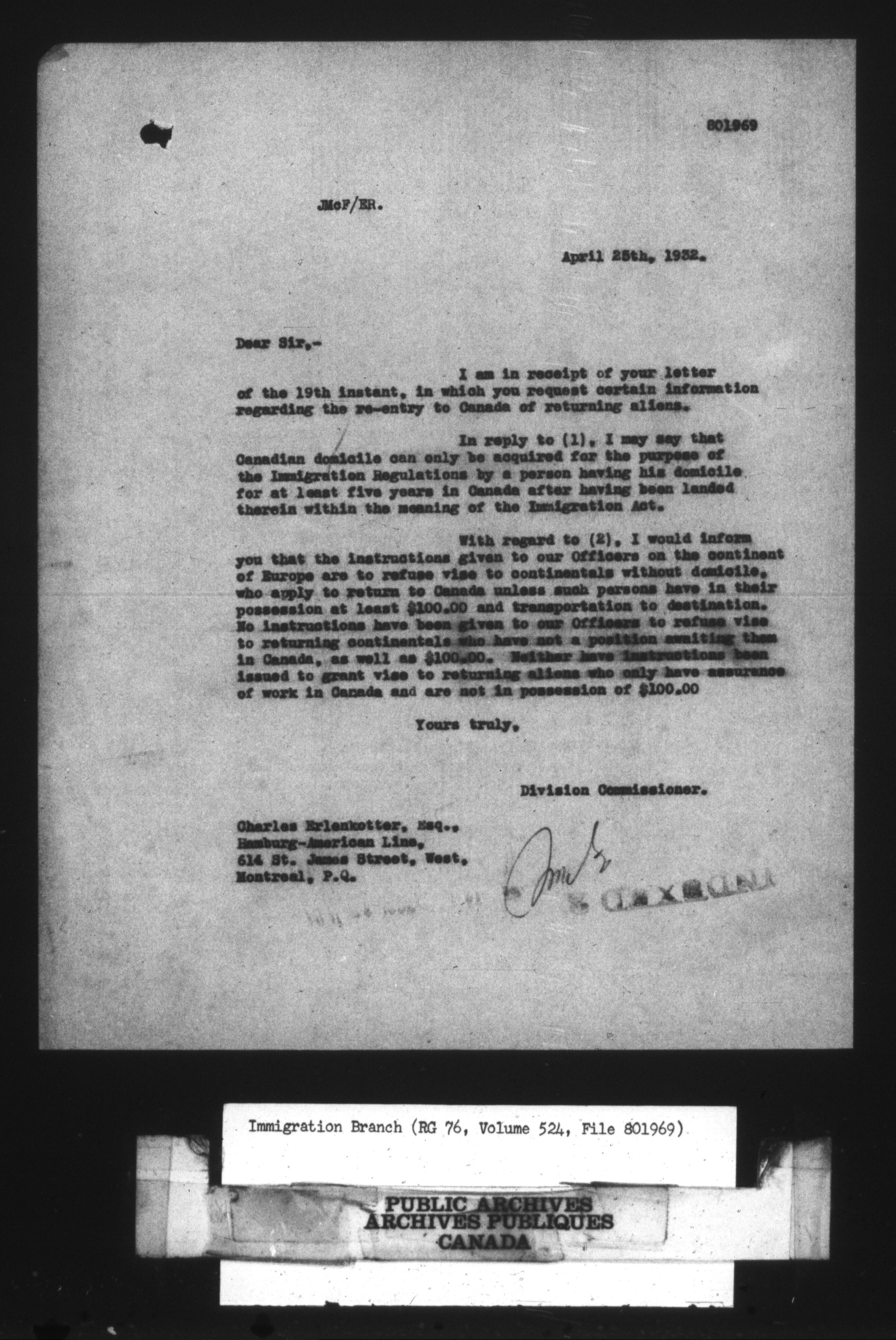 Subject, policy and case files in the First Central Registry series of the Immigration Program, 1892-1950 - 10618