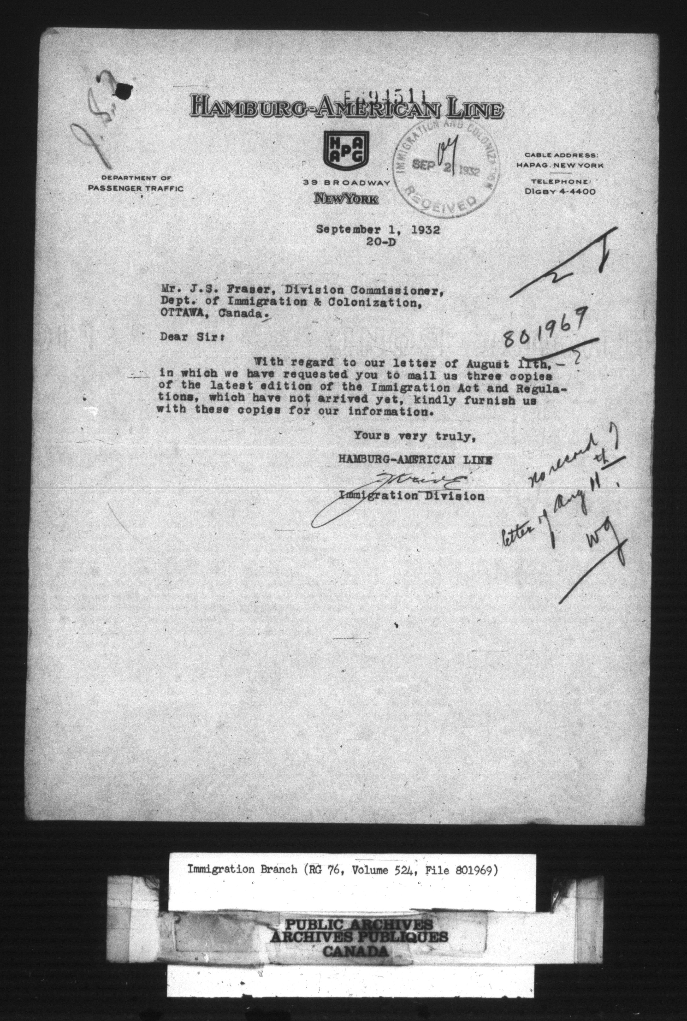 Subject, policy and case files in the First Central Registry series of the Immigration Program, 1892-1950 - 10618