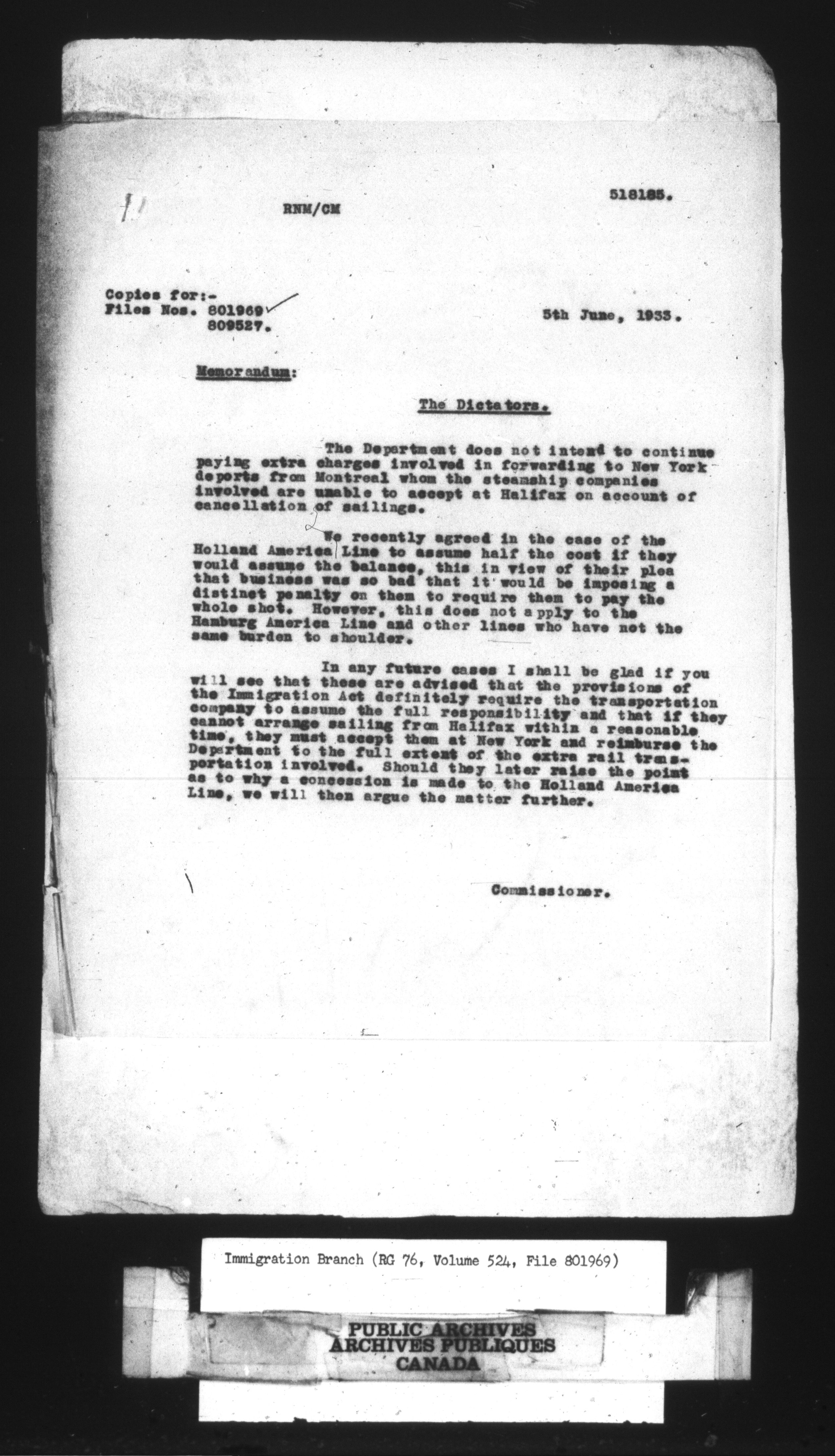 Subject, policy and case files in the First Central Registry series of the Immigration Program, 1892-1950 - 10618