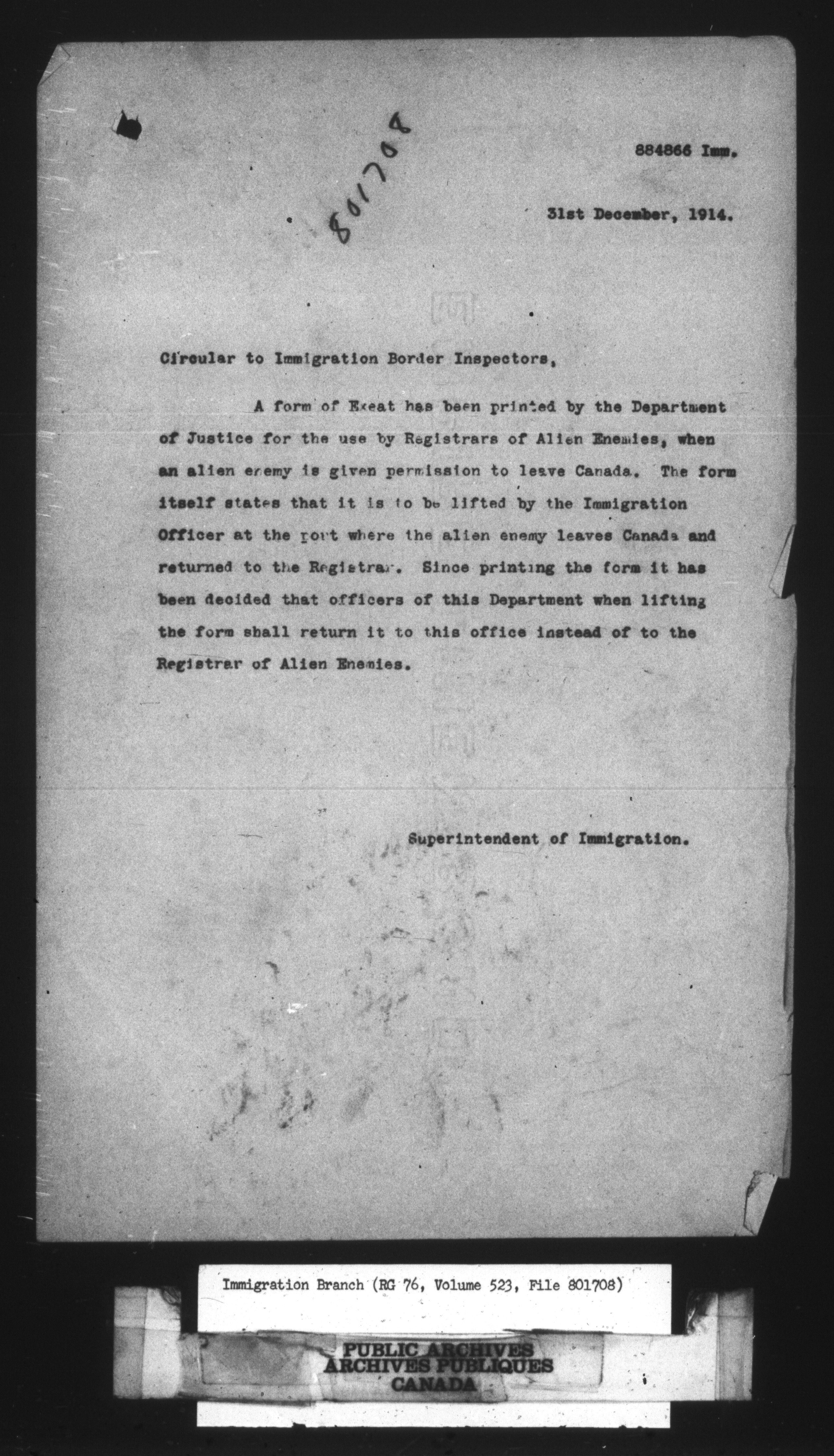 Subject, policy and case files in the First Central Registry series of the Immigration Program, 1892-1950 - 10618