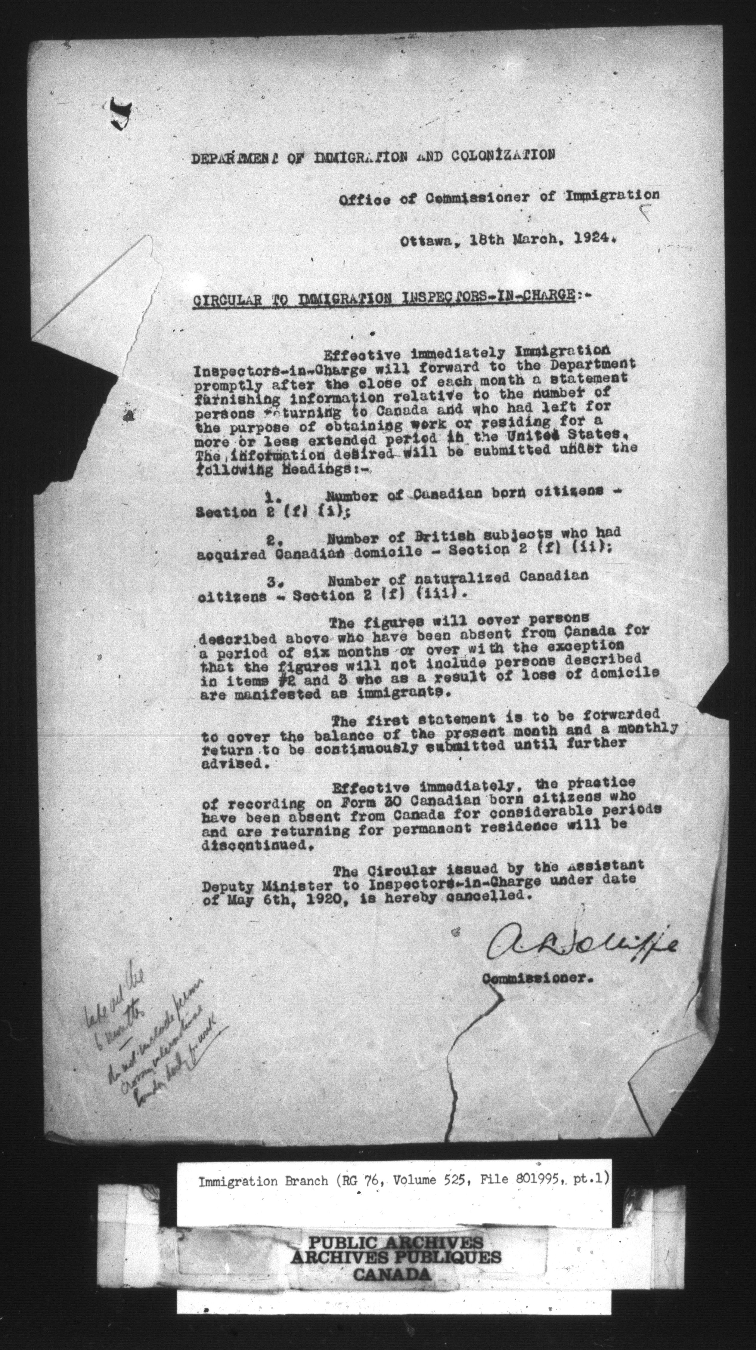 Subject, policy and case files in the First Central Registry series of the Immigration Program, 1892-1950 - 10619
