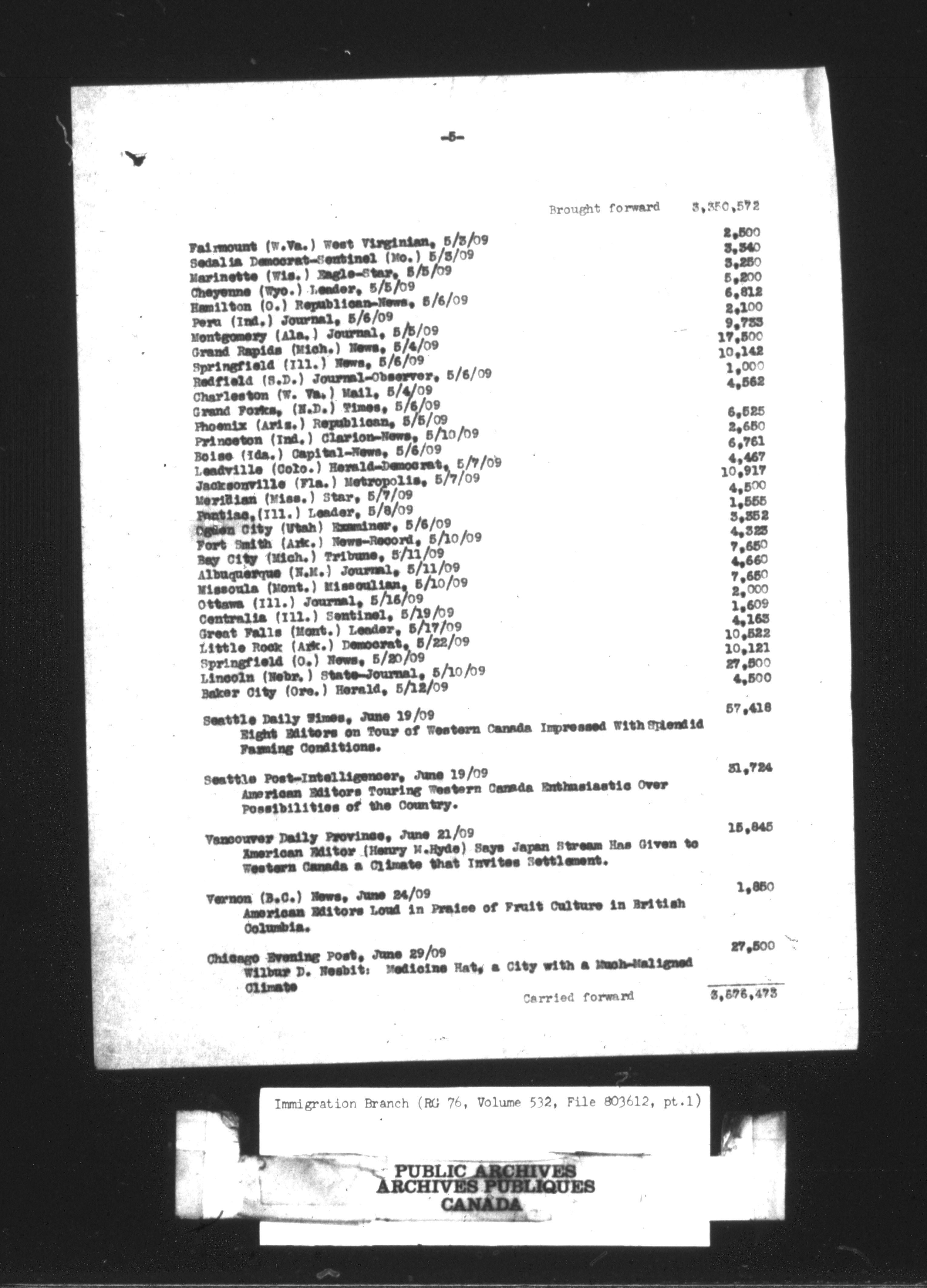 Subject, policy and case files in the First Central Registry series of the Immigration Program, 1892-1950 - 10623