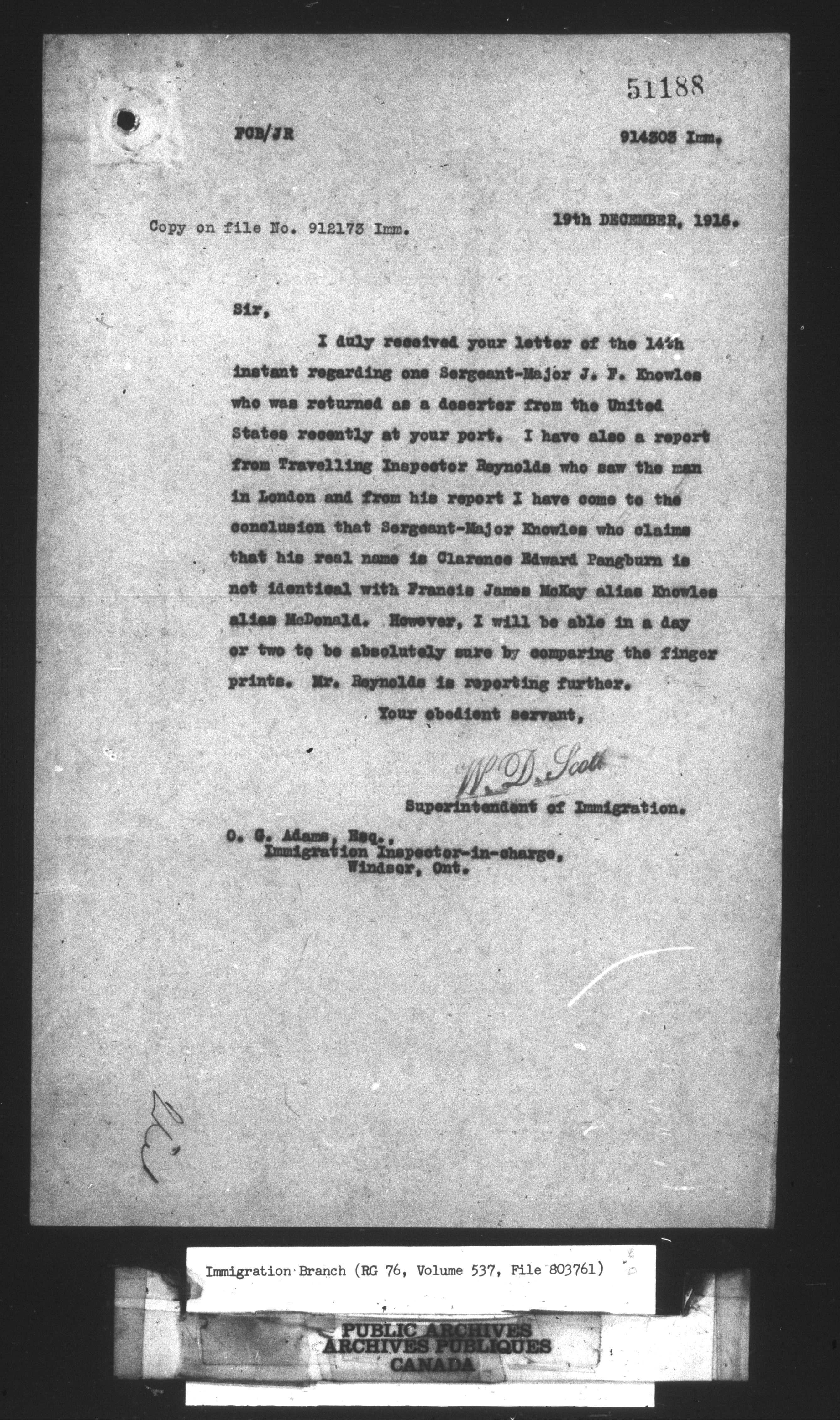 Subject, policy and case files in the First Central Registry series of the Immigration Program, 1892-1950 - 10627