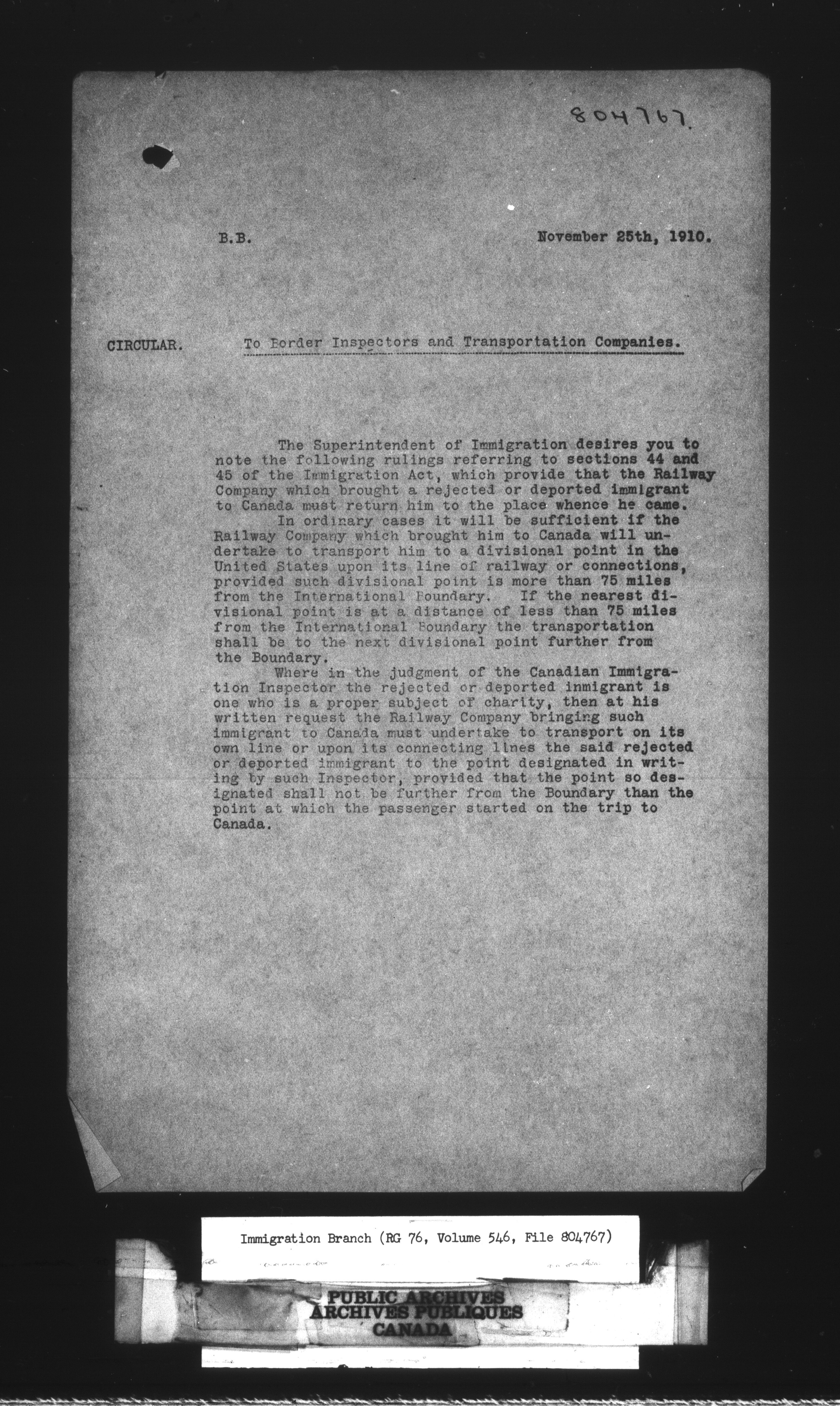 Subject, policy and case files in the First Central Registry series of the Immigration Program, 1892-1950 - 10632
