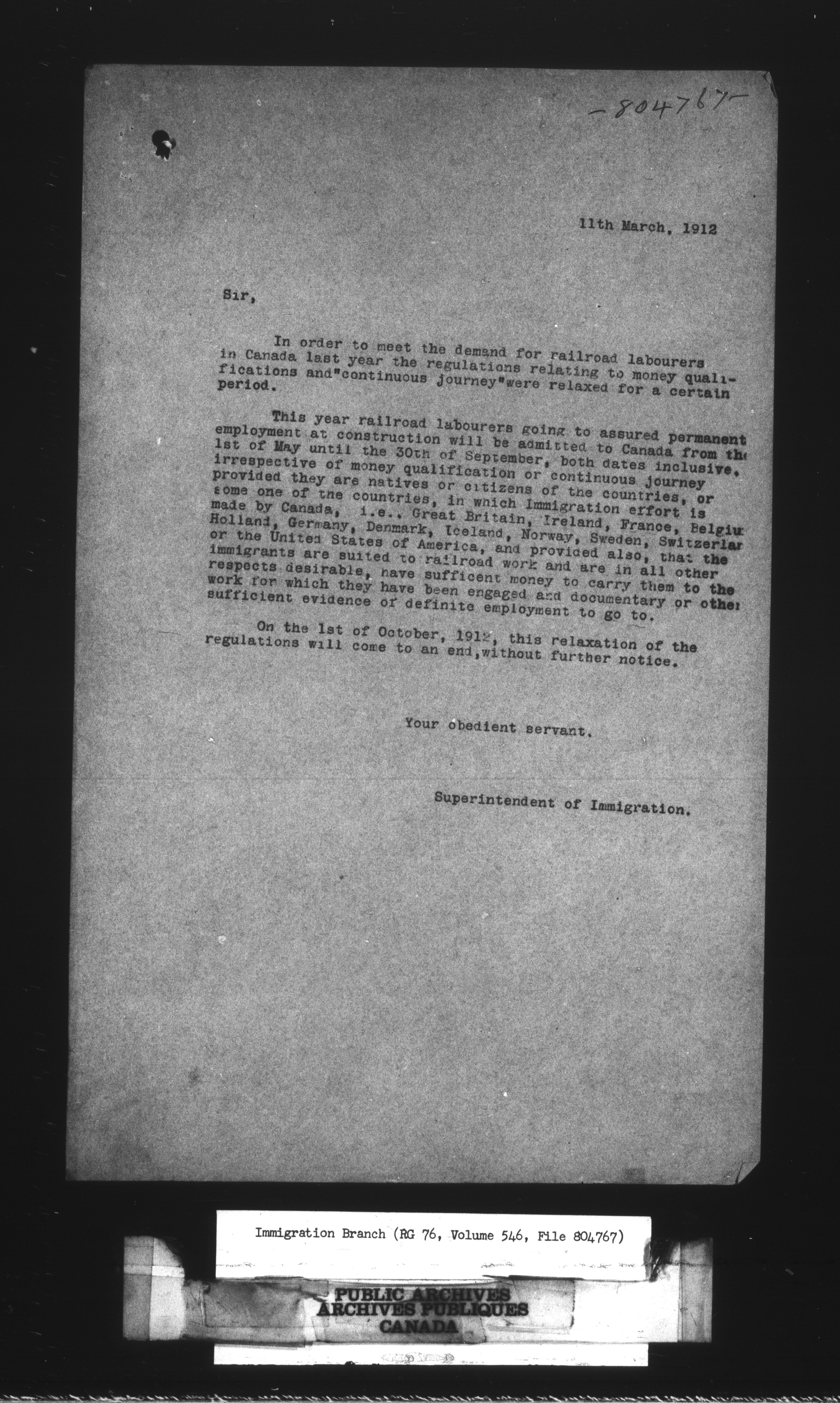 Subject, policy and case files in the First Central Registry series of the Immigration Program, 1892-1950 - 10632